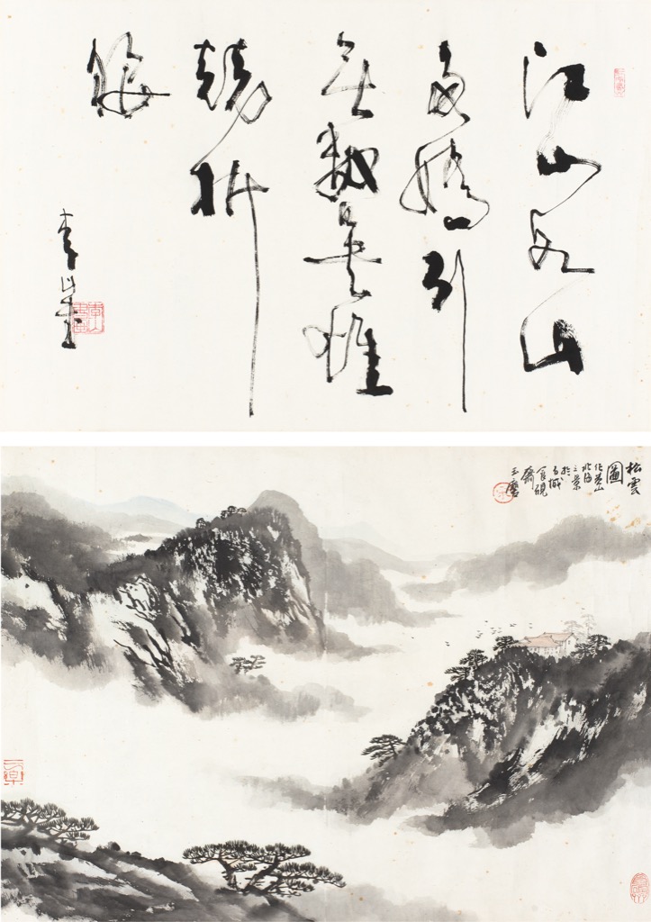 鏡片 設色 紙本、鏡心 水墨 紙本, 44x60.5cm、38x57.5cm