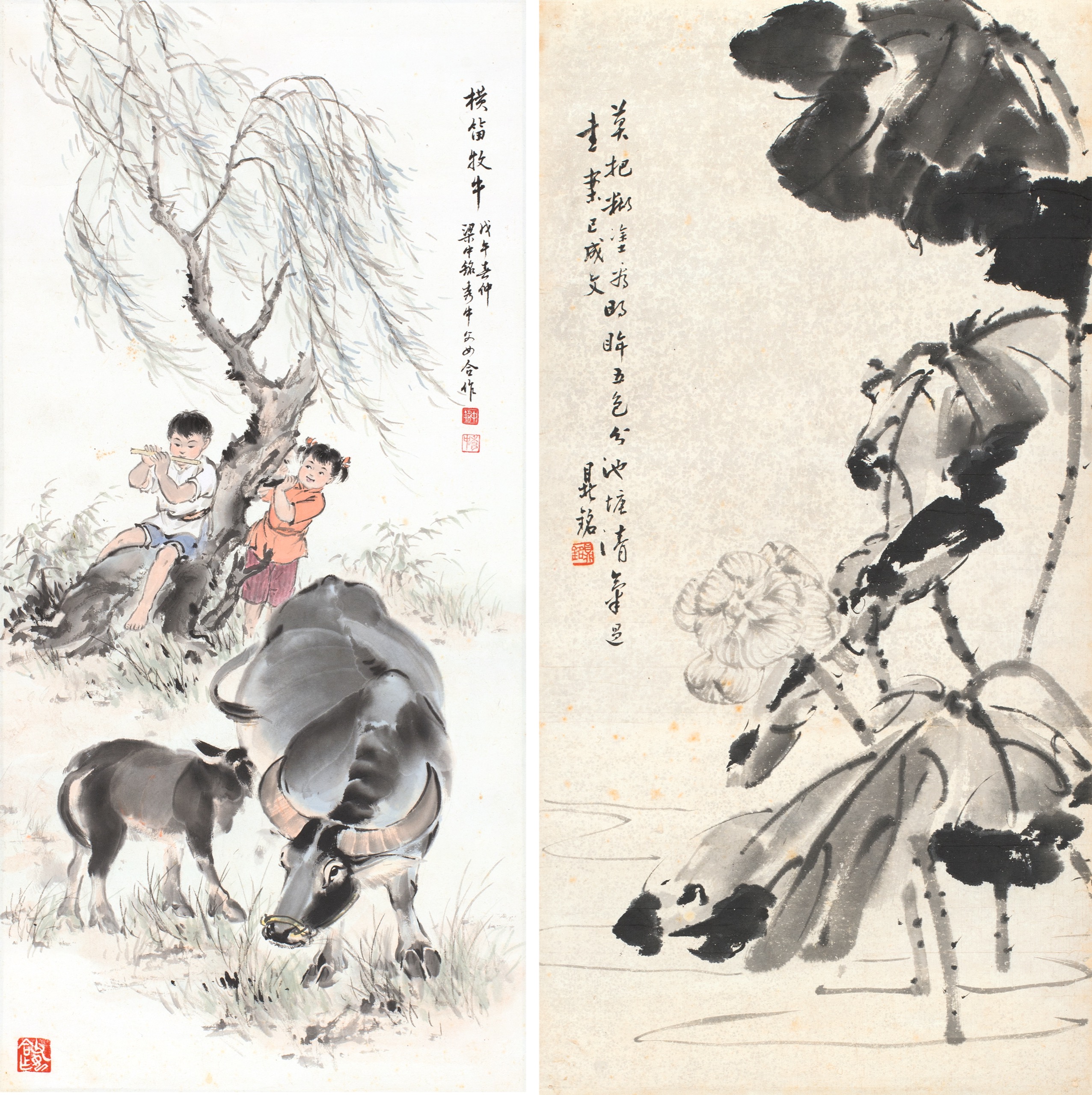 鏡片 設色 紙本、立軸 水墨 紙本, 69x33.5cm、67x34cm