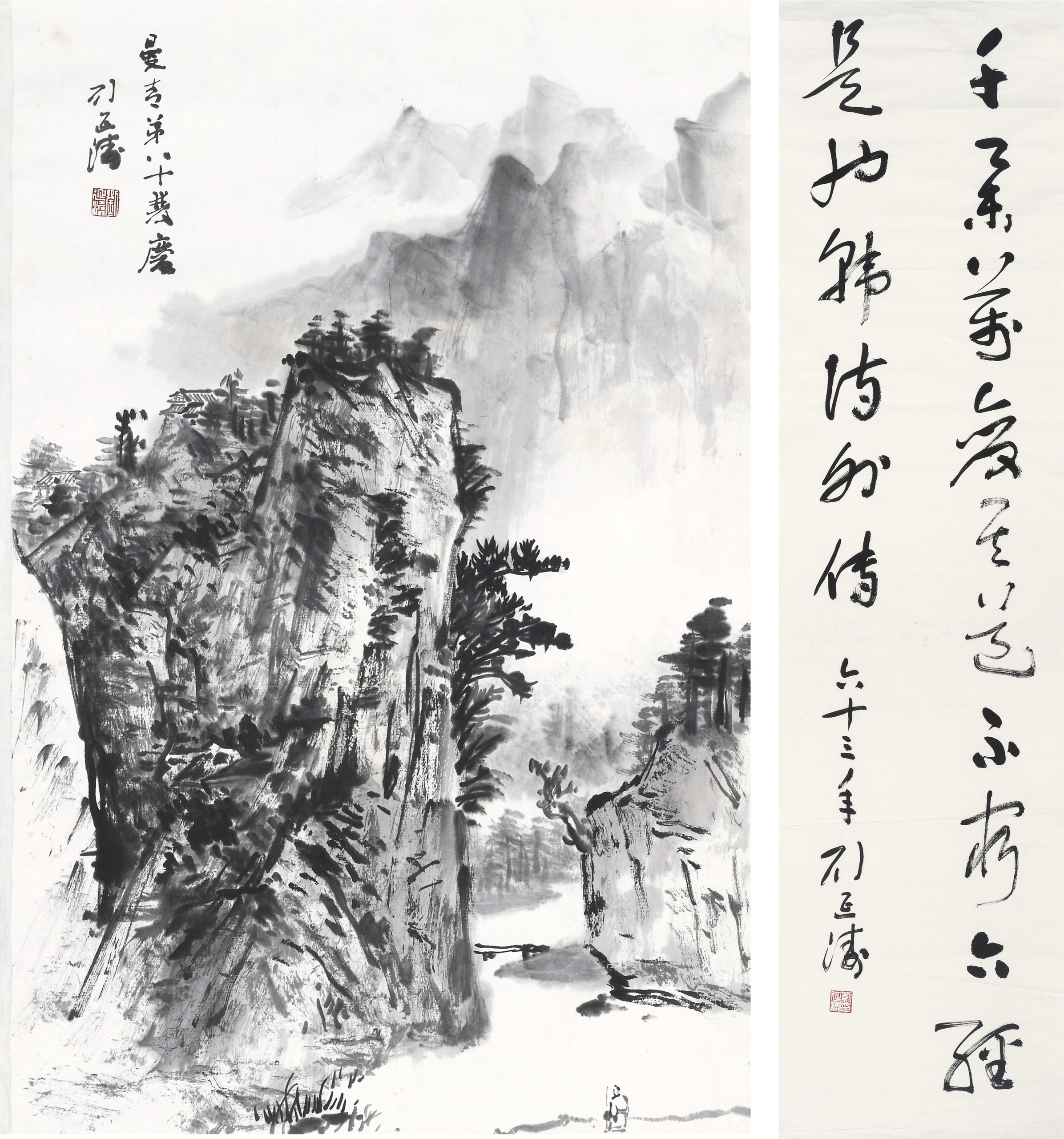 鏡片、鏡心 水墨 紙本, 70x45cm、133x34cm