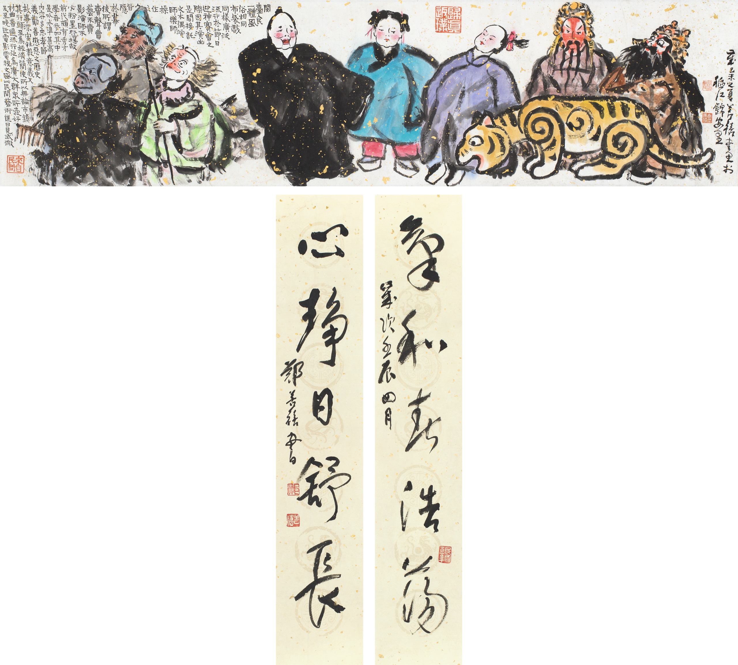鏡片 設色、水墨 紙本, 34x135cm、67.5x13cm x2