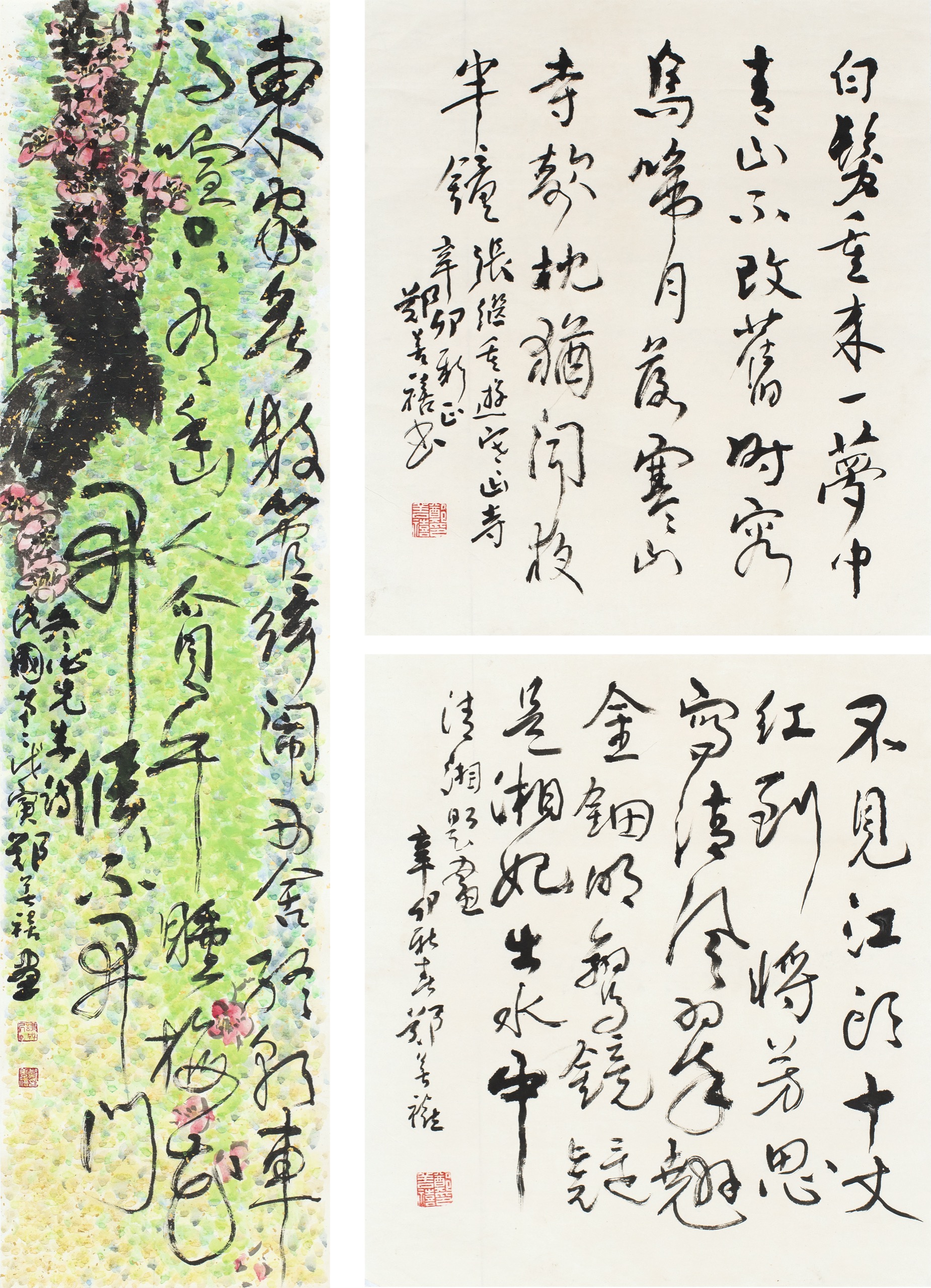 鏡片 設色、水墨 紙本, 139x36cm、35.5x40cm x2