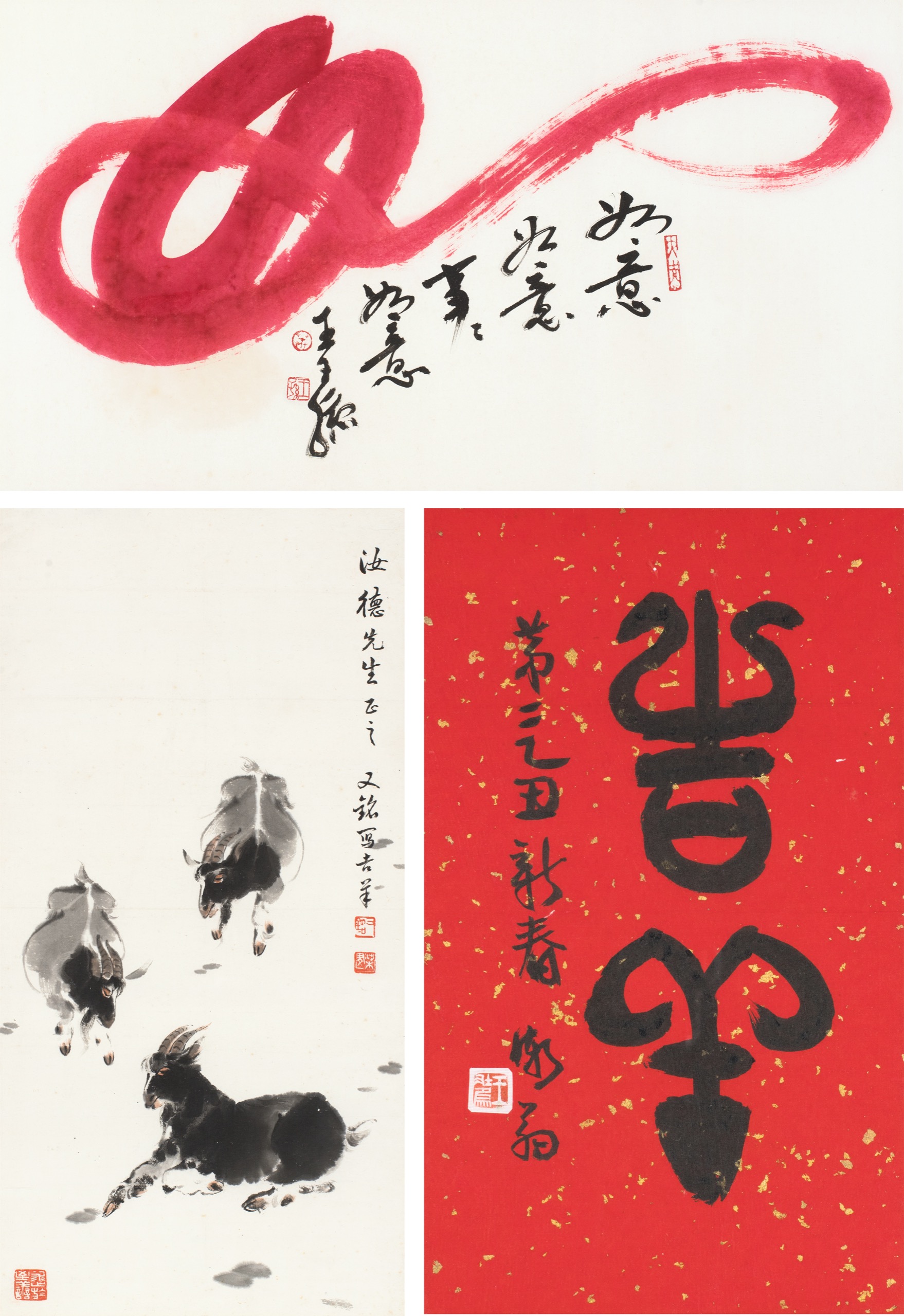 鏡框 設色 水墨 紙本, 67x33.5cm、52x94.5cm、34x20cm