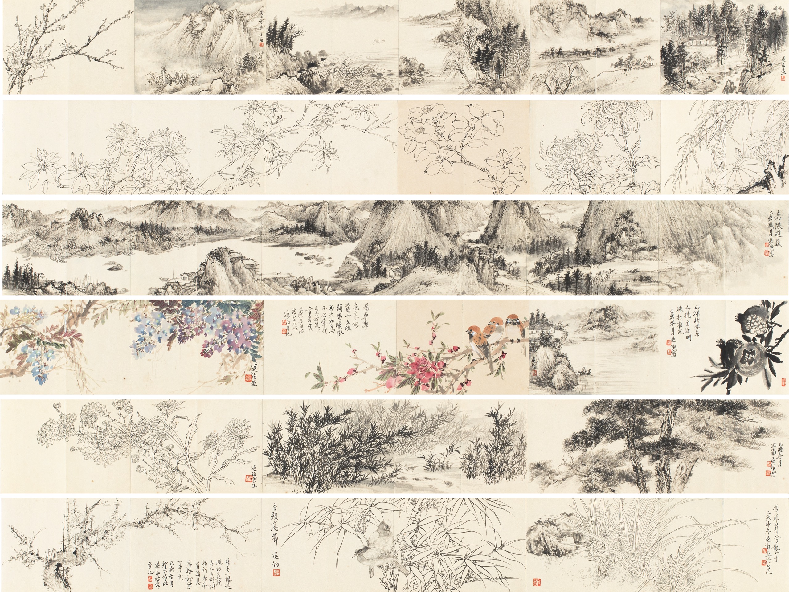 冊頁 水墨、設色 紙本, 16x21.5cm x36