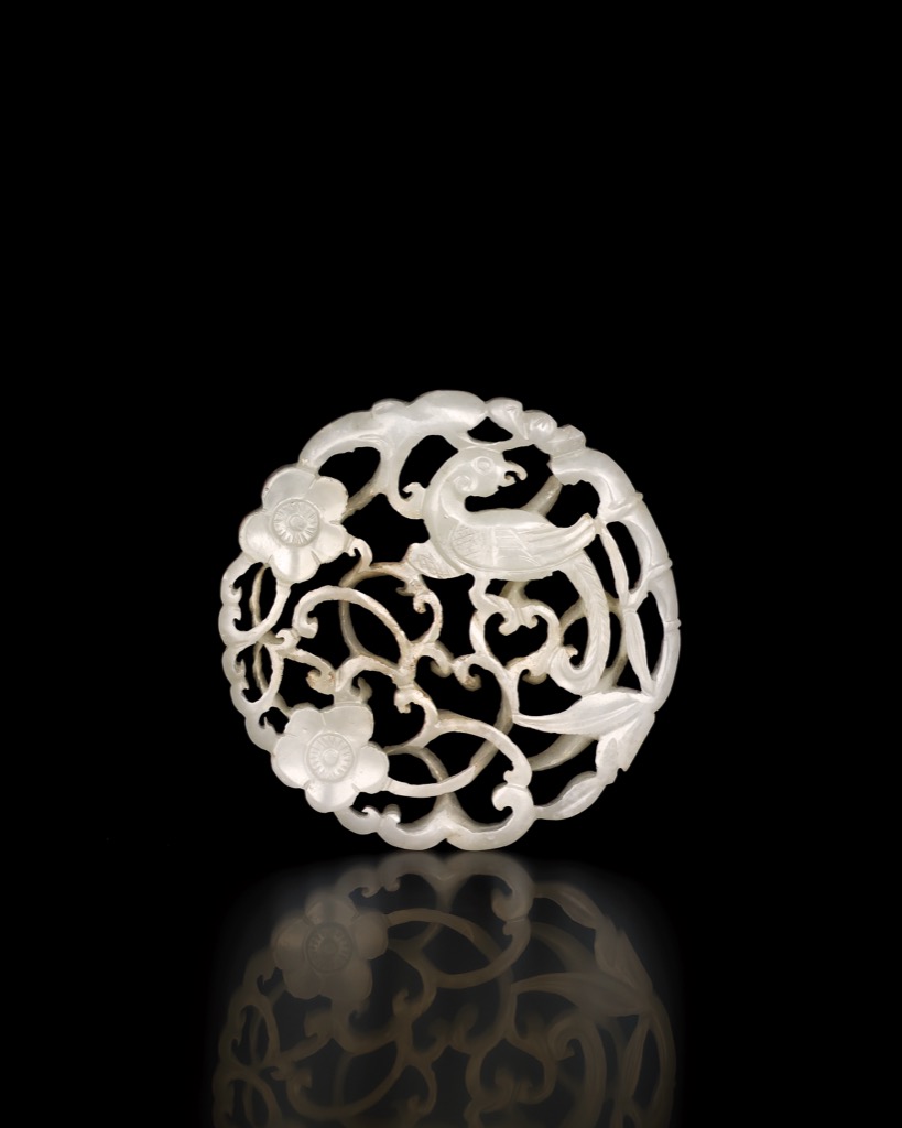 首頁 拍品總覽 2026迎春 share Lot. 1005 清 白玉鸚鵡紋珮 NT$ 30,000-60,000RMB¥ 6,000-12,000HK$ 7,500-15,000 媒材/尺寸 D5.8cm 來源 玉德君風―明清佩飾雅賞 Lot.1001-1024 賞析 此件以白玉鏤雕而成,玉色溫潤,質地細密,通體拋磨圓順。鸚鵡站立於花枝之上,回首昂喙,羽翼線條簡練而富動勢;周圍纏枝花卉舒卷流轉,枝蔓穿插自然,虛實相生。整體構圖勻稱,層次清晰,在繁密之中仍見留白節奏,風格靈動雅致。 登記競投 返回拍品列表 拍品推薦 1010 清 白玉雙龍搶珠紋珮 預估價:NT$ 100,000-150,000 2026迎春 1051 明 青玉鏤空龍紋帶扣 預估價:NT$ 100,000-150,000 2026迎春 1142 清 浣亭款朱泥思亭壺 預估價:NT$ 180,000-220,000 2026迎春 1156 清 銅雕瑞獸香薰 預估價:NT$ 30,000-50,000 2026迎春 1068 明 白玉靈芝龍紋帶板 預估價:NT$ 100,000-150,000 2026迎春 1017 清 白玉穀紋勒 預估價:NT$ 80,000-120,000 2026迎春 1099 清 白玉鏤雕龍紋扳指 預估價:NT$ 60,000-80,000 2026迎春 1035 明 玉雕寶鴨穿蓮 預估價:NT$ 150,000-250,000 2026迎春 1161 清 黃楊木隨形几 預估價:NT$ 30,000-50,000 2026迎春 1061 明 白玉鏤雕桃紋鉈尾 預估價:NT$ 100,000-150,000 2026迎春