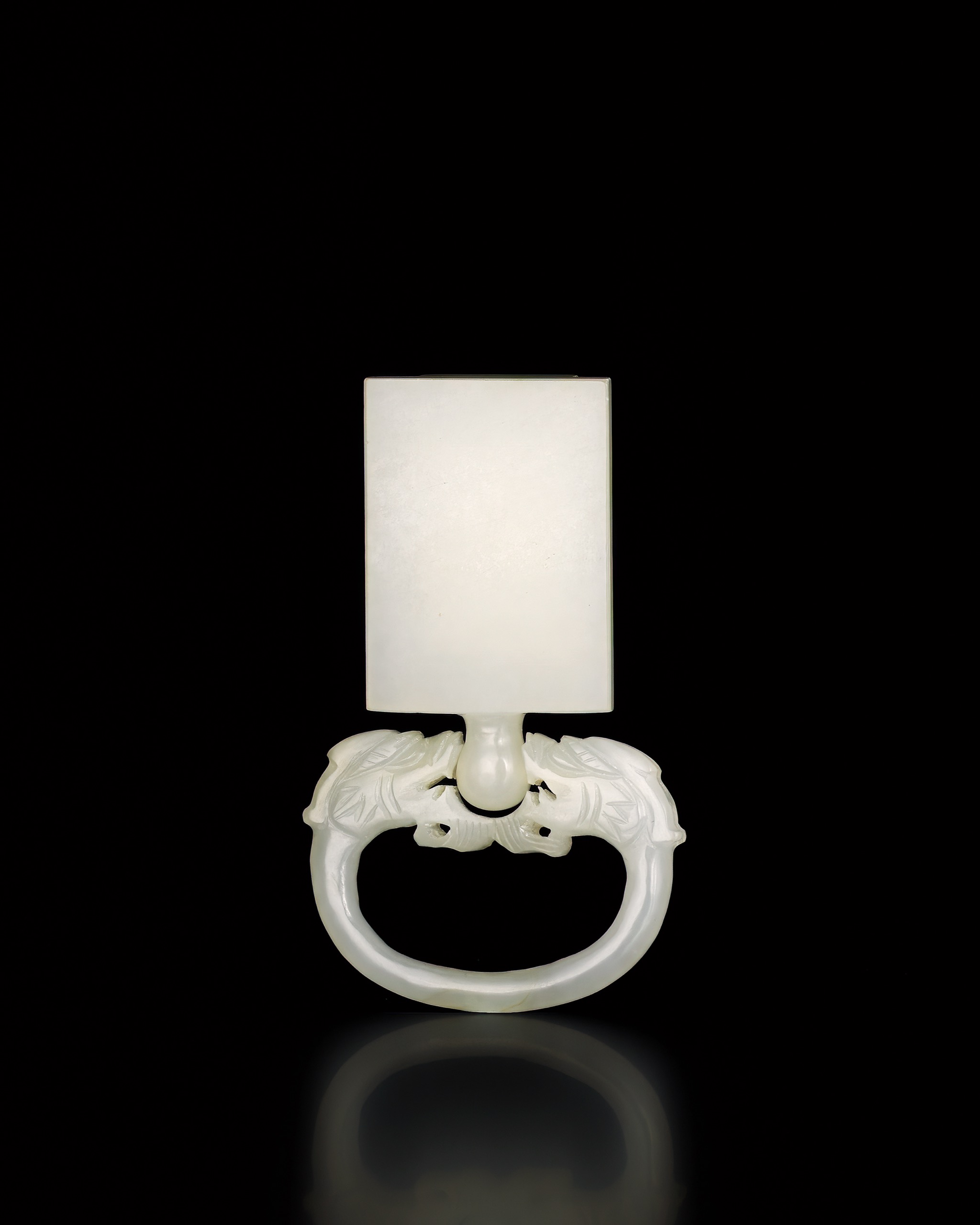 首頁 拍品總覽 2026迎春 share Lot. 1021 清 白玉龍紋提攜 NT$ 80,000-120,000RMB¥ 16,000-24,000HK$ 20,000-30,000 媒材/尺寸 H7cm 來源 玉德君風―明清佩飾雅賞 Lot.1001-1024 賞析 此件提攜上方作方形牌面,兩面光素無紋,邊棱俐落,比例勻整而端穩。下承帶環,兩端雕雙龍相向,身軀隨環勢盤繞,動勢內聚。中央圓鈕銜接方牌,頗有雙龍拱珠之意。本件形制殊為罕見,原屬包金結構,扣孔設於金、銀扣之上,上牌與下環亦以金屬榫接合。附圖為清宮舊物,同為素牌龍環,形制與本件極為相仿,或系出同源。 登記競投 返回拍品列表 拍品推薦 1010 清 白玉雙龍搶珠紋珮 預估價:NT$ 100,000-150,000 2026迎春 1131 明末清初 纏枝蓮紋如意耳象足方爐 預估價:NT$ 200,000-300,000 2026迎春 1133 明/清 袖珍銅爐 四件一組 預估價:NT$ 200,000-300,000 2026迎春 1137 清雍正 五彩纏枝蓮紋三足筒式爐 預估價:NT$ 150,000-250,000 2026迎春 1107 清乾隆 黃玉三羊開泰水丞 預估價:NT$ 3,000,000-5,000,000 2026迎春 1074 商 青玉錛形器 預估價:NT$ 50,000-80,000 2026迎春 1135 清康熙 五彩牡丹鳳凰紋棒槌瓶 預估價:NT$ 350,000-450,000 2026迎春 1104 靜公七秩壽禮 尚均款 田黃浮雕洪福紋 「天保九如」隨形章 預估價:NT$ 8,000,000-12,000,000 2026迎春 1103 清 白玉壽字螭龍紋如意形提攜 預估價:NT$ 120,000-180,000 2026迎春 1019 清 白玉囍字紋提攜 預估價:NT$ 120,000-180,000 2026迎春