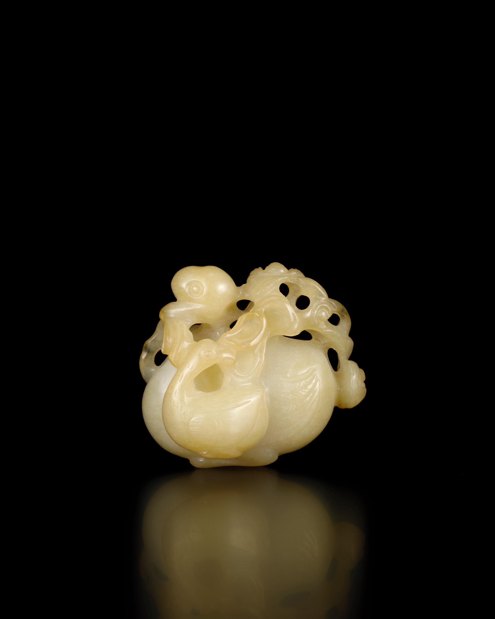首頁 拍品總覽 2026迎春 share Lot. 1035 明 玉雕寶鴨穿蓮 NT$ 150,000-250,000RMB¥ 30,000-50,000HK$ 37,500-62,500 媒材/尺寸 L4.8cm 來源 瑞象呈祥―明清圓雕集珍 Lot.1025-1055 賞析 此件玉雕寶鴨穿蓮,整體作圓潤團聚之勢,雙鴨相依而臥,身軀飽滿渾圓,首部前後呼應,一仰一俯,形成回環之構。羽翼以淺刻陰線表現,翎紋簡練而層次分明,腹部轉折柔和,尾羽收束含蓄。上方蓮枝翻卷穿繞,其間鏤空相連,枝葉曲折有致,與鴨身圓弧相互映帶,使動勢在環抱之中自然展開。鴨與蓮自古寓意和合連綿,象徵情誼相守與清淨吉祥,題材溫雅而含蓄。 登記競投 返回拍品列表 拍品推薦 1120 清中期 瓷胎剔紅群仙祝壽煙壺 預估價:NT$ 500,000-800,000 2026迎春 1101 清 白玉灑金皮翎管 預估價:NT$ 80,000-120,000 2026迎春 1146 清 白玉花卉紋盃 預估價:NT$ 120,000-180,000 2026迎春 1124 西藏 18世紀 銅鎏金文殊菩薩 預估價:NT$ 120,000-180,000 2026迎春 1156 清 銅雕瑞獸香薰 預估價:NT$ 30,000-50,000 2026迎春 1038 明 玉雕鶴銜壽桃 預估價:NT$ 80,000-120,000 2026迎春 1070 明 白玉龍紋鉈尾 預估價:NT$ 120,000-180,000 2026迎春 1132 明/清 袖珍銅爐 四件一組 預估價:NT$ 200,000-300,000 2026迎春 1065 明 銅鎏金鑲白玉穿花龍紋帶板 預估價:NT$ 300,000-500,000 2026迎春 1055 清 白玉蒼龍教子帶鉤 預估價:NT$ 120,000-180,000 2026迎春