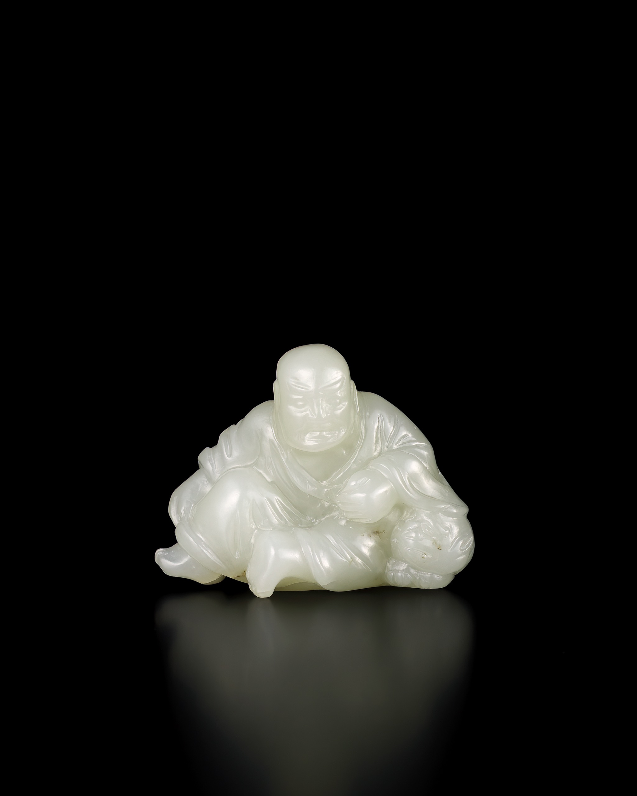 首頁 拍品總覽 2026迎春 share Lot. 1044 清 白玉伏虎羅漢 NT$ 120,000-180,000RMB¥ 24,000-36,000HK$ 30,000-45,000 媒材/尺寸 L4.6cm 來源 瑞象呈祥―明清圓雕集珍 Lot.1025-1055 賞析 羅漢面容方闊,眉骨高聳,雙目微斂,神情沉毅內斂。隨性而坐,一腿屈膝前收,一腿側展微舒,身軀微傾;右臂自然垂放,左臂屈肘按伏虎背,定力內蘊。衣褶順勢鋪展,層層起伏,轉折圓融。虎伏於側,首微仰,四肢收束,神態馴順而威勢不張。整體動靜相生,寓意以德攝剛、調伏心性。 登記競投 返回拍品列表 拍品推薦 1096 清 青白玉荷葉形洗 預估價:NT$ 120,000-180,000 2026迎春 1144 清 龍紋抱柱毯 預估價:NT$ 150,000-250,000 2026迎春 1128 清乾隆 銅鎏金鳳紋錦邊天雞耳簋式爐 預估價:NT$ 250,000-350,000 2026迎春 1018 清 白玉雙龍磬形珮 一對 預估價:NT$ 120,000-180,000 2026迎春 1133 明/清 袖珍銅爐 四件一組 預估價:NT$ 200,000-300,000 2026迎春 1015 清 白玉福壽長春龍紋牌 預估價:NT$ 120,000-180,000 2026迎春 1047 民國 白玉靈鼠呈祥 預估價:NT$ 50,000-80,000 2026迎春 1071 元 白玉鏤雕花鳥紋鉈尾 預估價:NT$ 100,000-150,000 2026迎春 1005 清 白玉鸚鵡紋珮 預估價:NT$ 30,000-60,000 2026迎春 1080 遼/金 白玉巧雕封侯得祿山子 預估價:NT$ 80,000-120,000 2026迎春