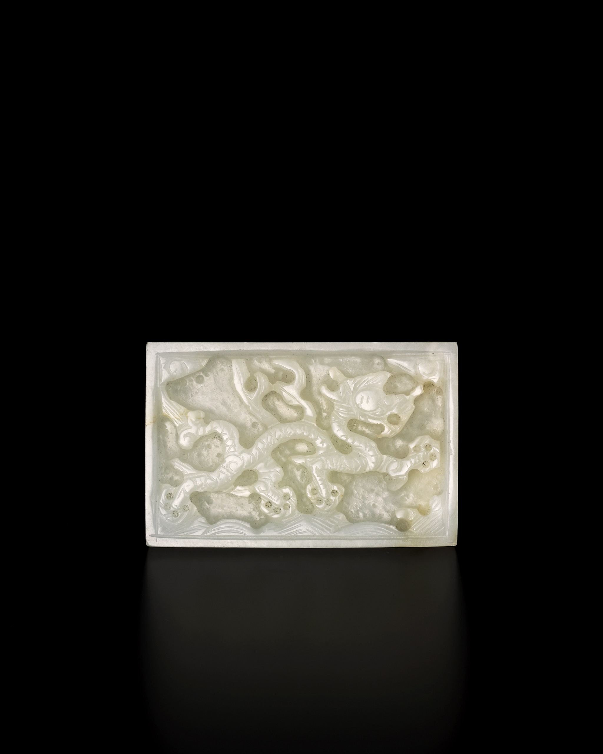 首頁 拍品總覽 2026迎春 share Lot. 1056 明 白玉雲龍紋帶板 NT$ 80,000-120,000RMB¥ 16,000-24,000HK$ 20,000-30,000 媒材/尺寸 L5.4cm 來源 端凝法度―元明帶板精華 Lot.1056-1072 賞析 白玉龍紋帶板,作長方制式,邊框平直起棱。玉質潔白細潤,質理緊密,局部留有黃沁。正面浮雕雲龍紋,龍身修長蜿蜒,龍鱗刻劃清晰;四肢舒展,爪趾有力。龍身周側飾以火焰紋,焰舌翻捲上揚,奔騰氣勢;下承海水紋,波濤起伏,構圖充實,動勢連貫。 登記競投 返回拍品列表 拍品推薦 1016 清 白玉龍紋勒 預估價:NT$ 60,000-80,000 2026迎春 1041 清 白玉豆莢 預估價:NT$ 30,000-50,000 2026迎春 1051 明 青玉鏤空龍紋帶扣 預估價:NT$ 100,000-150,000 2026迎春 1072 元/明 白玉鏤空穿花龍紋鉈尾 預估價:NT$ 120,000-180,000 2026迎春 1056 明 白玉雲龍紋帶板 預估價:NT$ 80,000-120,000 2026迎春 1017 清 白玉穀紋勒 預估價:NT$ 80,000-120,000 2026迎春 1047 民國 白玉靈鼠呈祥 預估價:NT$ 50,000-80,000 2026迎春 1020 清 白玉囍字紋提攜 預估價:NT$ 100,000-150,000 2026迎春 1059 明 白玉鏤雕雲鶴紋帶板 預估價:NT$ 150,000-250,000 2026迎春 1082 遼/金 青白玉鴛鴦 預估價:NT$ 80,000-120,000 2026迎春