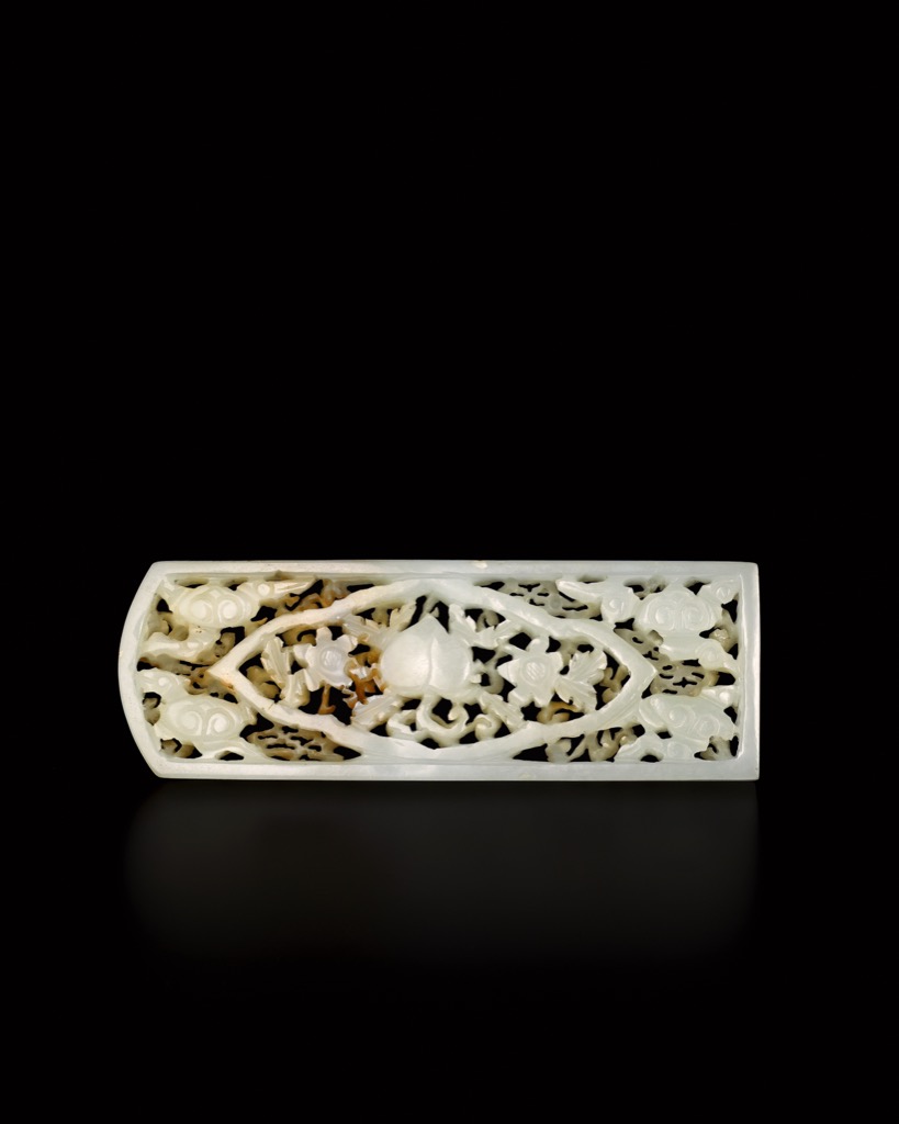 首頁 拍品總覽 2026迎春 share Lot. 1061 明 白玉鏤雕桃紋鉈尾 NT$ 100,000-150,000RMB¥ 20,000-30,000HK$ 25,000-37,500 媒材/尺寸 L9.5cm 來源 端凝法度―元明帶板精華 Lot.1056-1072 賞析 白玉鏤雕桃紋鉈尾,玉質勻實,略有黃沁。鉈尾為腰帶末端之垂飾,多用以壓束帶端、平衡佩系,兼具實用與裝飾功能。本件採雙層透雕,層次分明。邊沿起框,框內環飾如意雲紋,雲氣翻湧成勢。中央開稜形光欄,內浮雕壽桃一枚,果形飽滿,花卉舒展,枝葉相承。地部滿作錦紋透雕,孔隙均勻,虛實交織,自成玲瓏通透之格。 登記競投 返回拍品列表 拍品推薦 1041 清 白玉豆莢 預估價:NT$ 30,000-50,000 2026迎春 1043 清 白玉逍遙童子 預估價:NT$ 80,000-120,000 2026迎春 1095 清 白玉龍紋蓋 預估價:NT$ 50,000-80,000 2026迎春 1099 清 白玉鏤雕龍紋扳指 預估價:NT$ 60,000-80,000 2026迎春 1127 清乾隆 銅鎏金無量壽佛 預估價:NT$ 120,000-180,000 2026迎春 1004 明 白玉萬壽方勝紋珮 預估價:NT$ 30,000-60,000 2026迎春 1134 清中期 掐絲琺瑯纏枝花卉紋螭龍耳三足爐 預估價:NT$ 500,000-800,000 2026迎春 1130 清早期 夔龍紋如意耳簋式爐 預估價:NT$ 200,000-300,000 2026迎春 1077 商 青玉戈、魚珮 兩件一組 預估價:NT$ 30,000-50,000 2026迎春 1024 清 白玉螭龍紋盤長形帶扣 預估價:NT$ 80,000-120,000 2026迎春