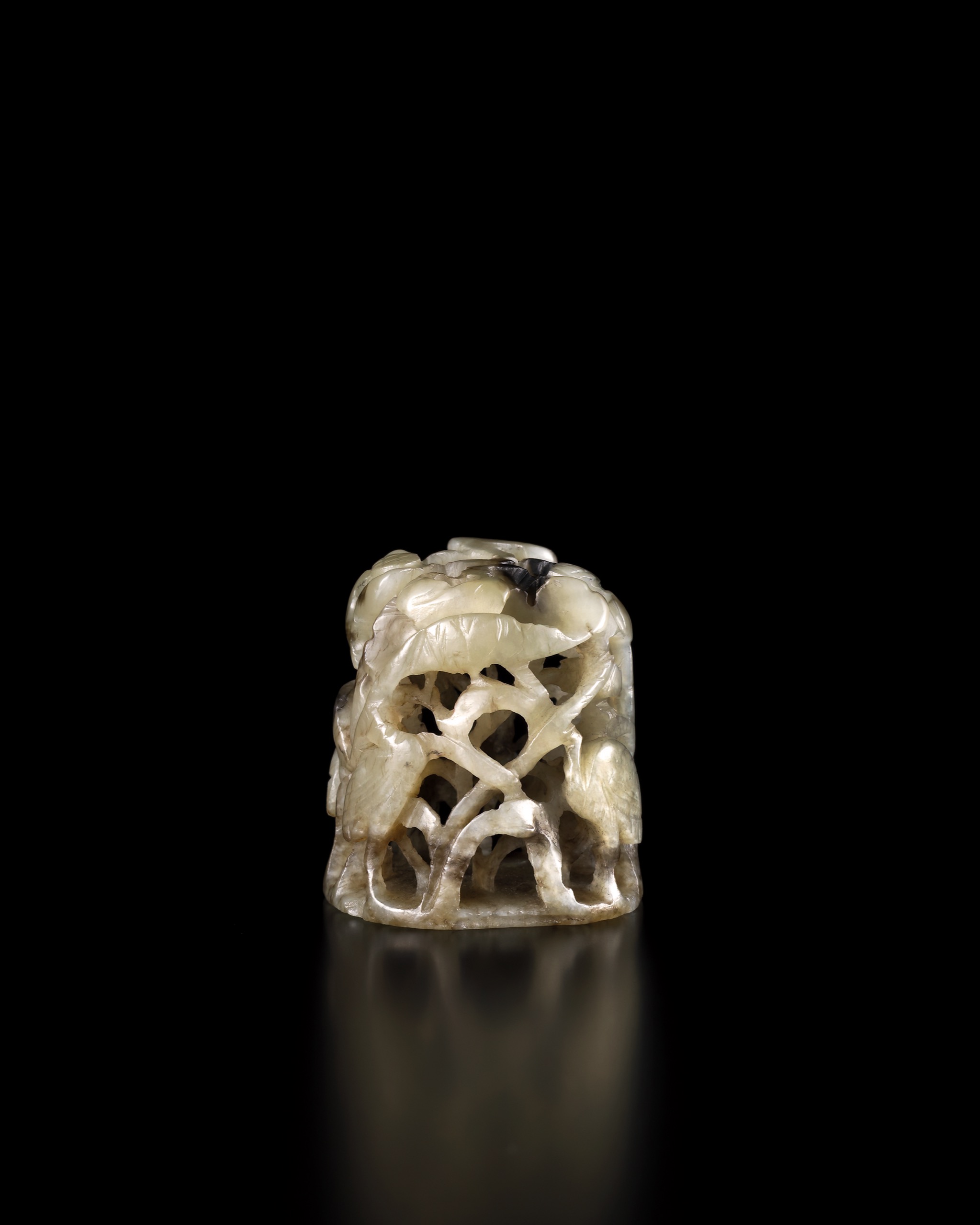 首頁 拍品總覽 2026迎春 share Lot. 1081 元/明 白玉鏤雕鷺鷥紋冠頂 NT$ 80,000-120,000RMB¥ 16,000-24,000HK$ 20,000-30,000 媒材/尺寸 H3cm 來源 形神入妙―歷代玉器薈萃 Lot.1073-1103 賞析 冠頂器呈筒形,通體鏤空,荷梗交錯,葉片翻卷,其間雕鷺鷥數隻,或昂首佇立,或俯身啄食,長喙修直,羽翎以陰線刻劃,形象簡練。底面平整,設四穿孔,用以縫綴固定,原為元代王公貴族所配戴鈸笠之帽頂構件。明代以後冠制與風俗漸異,此類形制多轉為爐頂之用。 登記競投 返回拍品列表 拍品推薦 1078 戰國 白玉劍珌 預估價:NT$ 80,000-120,000 2026迎春 1076 良渚文化 青玉錐形器 預估價:NT$ 80,000-120,000 2026迎春 1007 清 白玉S形龍紋珮 預估價:NT$ 120,000-180,000 2026迎春 1003 明 白玉受天百年龍紋珮 預估價:NT$ 30,000-60,000 2026迎春 1017 清 白玉穀紋勒 預估價:NT$ 80,000-120,000 2026迎春 1080 遼/金 白玉巧雕封侯得祿山子 預估價:NT$ 80,000-120,000 2026迎春 1023 清 白玉喜字盤長形帶扣 預估價:NT$ 80,000-120,000 2026迎春 1153 清 竹雕觀音菩薩 預估價:NT$ 30,000-50,000 2026迎春 1088 明 青白玉三才環 預估價:NT$ 80,000-120,000 2026迎春 1034 明 玉雕福祿雙喜筆山 預估價:NT$ 120,000-200,000 2026迎春