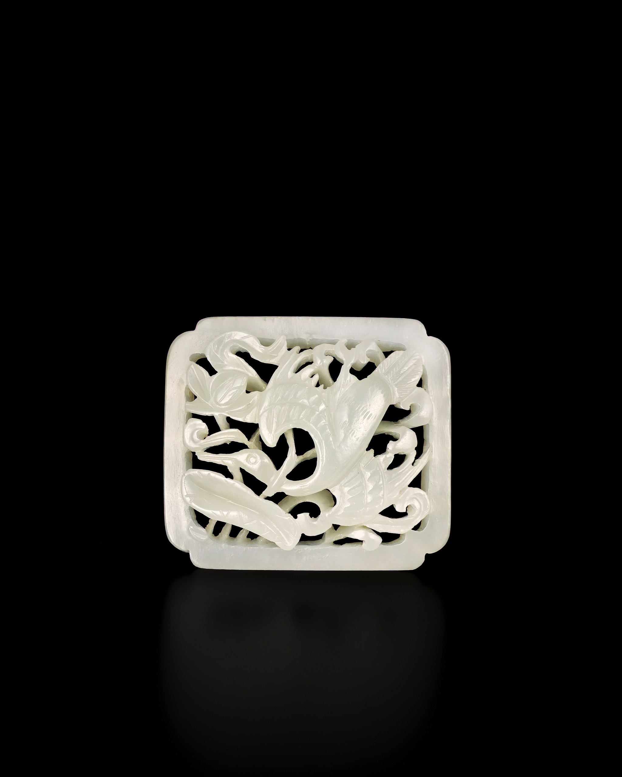 首頁 拍品總覽 2026迎春 share Lot. 1083 元/明 白玉雁紋帶飾 NT$ 120,000-180,000RMB¥ 24,000-36,000HK$ 30,000-45,000 媒材/尺寸 L4.1cm 來源 形神入妙―歷代玉器薈萃 Lot.1073-1103 賞析 帶飾器呈四方窩造型,四隅作窩角式,外緣起寬邊框,內部鏤空透雕。畫面以荷梗穿插盤繞為主,枝葉翻卷,其間一雁振翼回首,長頸彎曲,喙端微啟,雙翅上揚,尾羽層疊分明。下方荷葉舒展,與雁身曲線相互呼應,構圖緊密而層次清晰,前後穿透,動勢鮮明,裝飾意味濃厚。 登記競投 返回拍品列表 拍品推薦 1051 明 青玉鏤空龍紋帶扣 預估價:NT$ 100,000-150,000 2026迎春 1030 清 白玉童子 預估價:NT$ 50,000-80,000 2026迎春 1088 明 青白玉三才環 預估價:NT$ 80,000-120,000 2026迎春 1032 清 白玉佛手 預估價:NT$ 50,000-80,000 2026迎春 1077 商 青玉戈、魚珮 兩件一組 預估價:NT$ 30,000-50,000 2026迎春 1074 商 青玉錛形器 預估價:NT$ 50,000-80,000 2026迎春 1100 清 白玉纏枝牡丹紋翎管 預估價:NT$ 80,000-120,000 2026迎春 1138 清光緒 礬紅彩福壽雙全紋洗 預估價:NT$ 250,000-400,000 2026迎春 1130 清早期 夔龍紋如意耳簋式爐 預估價:NT$ 200,000-300,000 2026迎春 1143 清 龍紋抱柱毯 預估價:NT$ 150,000-250,000 2026迎春