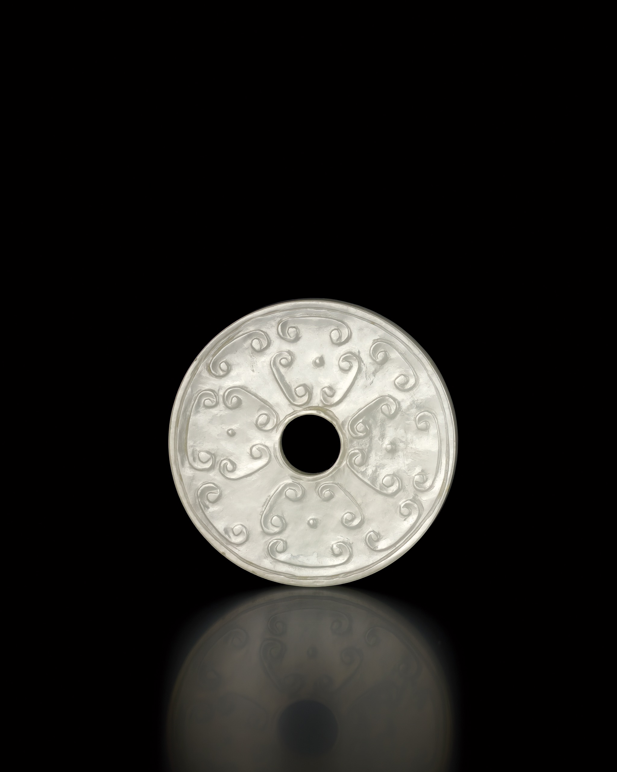首頁 拍品總覽 2026迎春 share Lot. 1091 清 白玉連鉤雲紋璧 NT$ 80,000-120,000RMB¥ 16,000-24,000HK$ 20,000-30,000 媒材/尺寸 D5.5cm 來源 形神入妙―歷代玉器薈萃 Lot.1073-1103 賞析 白玉連鉤雲紋璧,玉質潔白細潤,光澤柔和內蘊。器形圓整勻稱,中心孔徑端正,邊沿修整圓融,比例嚴謹。器面浮雕連鉤雲紋,分區對稱佈列,紋勢迴旋舒展,線條流暢而不失力度。雲紋層層相承,形成圓周運行之節奏,章法嚴整,整體氣息清雅含蓄。 登記競投 返回拍品列表 拍品推薦 1018 清 白玉雙龍磬形珮 一對 預估價:NT$ 120,000-180,000 2026迎春 1080 遼/金 白玉巧雕封侯得祿山子 預估價:NT$ 80,000-120,000 2026迎春 1031 清 白玉雙童 預估價:NT$ 60,000-80,000 2026迎春 1108 清乾隆 白玉寶相花紋圓盒 預估價:NT$ 600,000-1,200,000 2026迎春 1006 清 白玉生坑龍紋珮 預估價:NT$ 100,000-150,000 2026迎春 1076 良渚文化 青玉錐形器 預估價:NT$ 80,000-120,000 2026迎春 1036 清 白玉蛙 預估價:NT$ 200,000-300,000 2026迎春 1125 清 銅鎏金無量壽佛 預估價:NT$ 80,000-120,000 2026迎春 1063 明 白玉凌霄花紋帶板 預估價:NT$ 80,000-120,000 2026迎春 1146 清 白玉花卉紋盃 預估價:NT$ 120,000-180,000 2026迎春