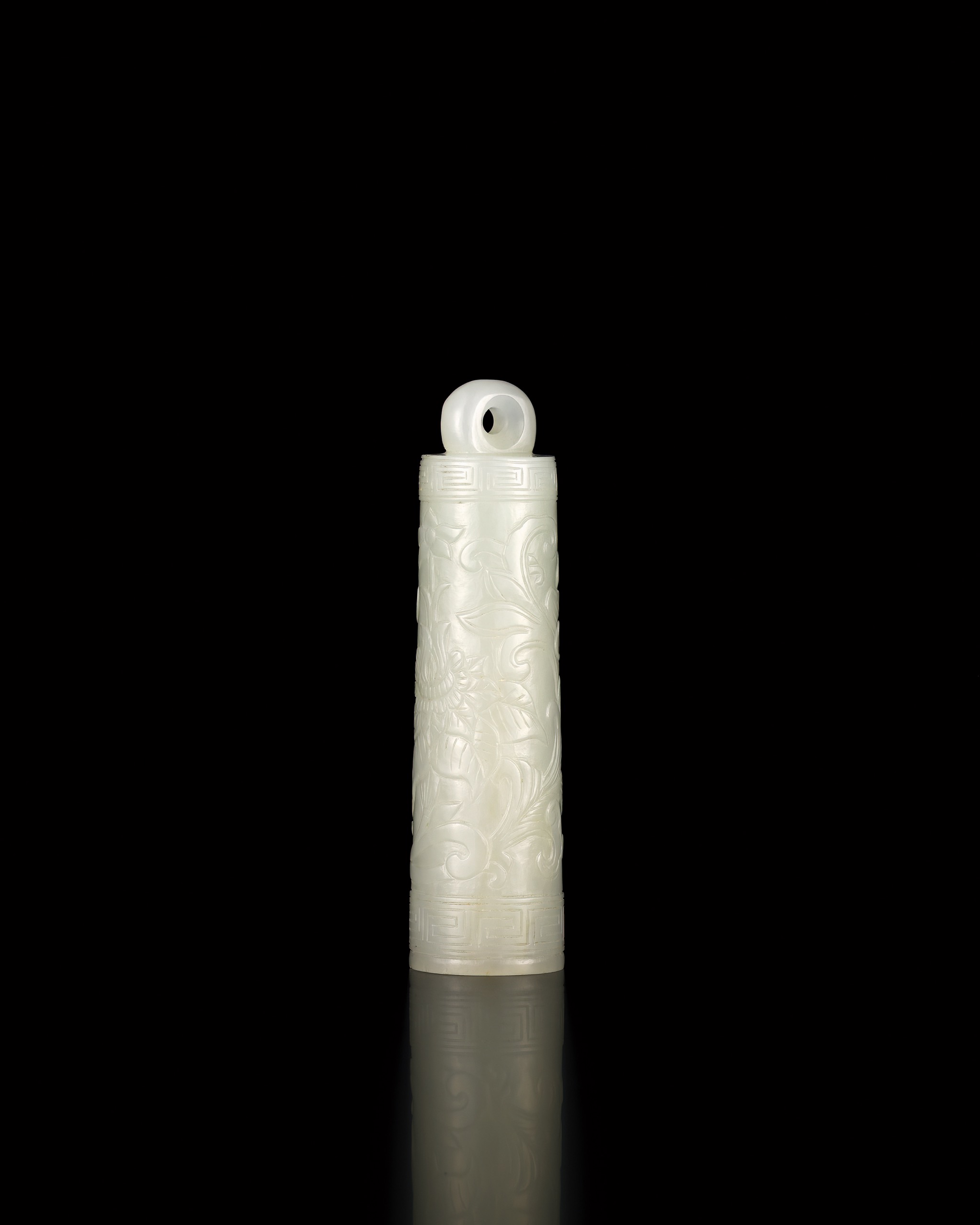 首頁 拍品總覽 2026迎春 share Lot. 1100 清 白玉纏枝牡丹紋翎管 NT$ 80,000-120,000RMB¥ 16,000-24,000HK$ 20,000-30,000 媒材/尺寸 H5.7cm 來源 形神入妙―歷代玉器薈萃 Lot.1073-1103 賞析 白玉纏枝牡丹紋翎管,玉色潔白勻淨,質地細潤。器作長筒形,比例修長端整。口沿與底部各飾回紋一周,方折分明,起界隔之用。腹部淺浮雕纏枝牡丹,花葉舒展,枝蔓回旋,陰刻線條清晰,章法疏密有致。頂端作圓環穿孔,以便貫繫。整體造型規整,紋飾雅潔,堪稱同類精品。 登記競投 返回拍品列表 拍品推薦 1043 清 白玉逍遙童子 預估價:NT$ 80,000-120,000 2026迎春 1151 清 戧金彩繪纏枝蓮紋方盒 預估價:NT$ 30,000-50,000 2026迎春 1050 明 白玉蒼龍教子帶鉤 預估價:NT$ 80,000-120,000 2026迎春 1091 清 白玉連鉤雲紋璧 預估價:NT$ 80,000-120,000 2026迎春 1141 清 乾隆款朱泥扁圓壺 預估價:NT$ 180,000-220,000 2026迎春 1066 明 青白玉龍紋帶板 十件一組 預估價:NT$ 400,000-600,000 2026迎春 1103 清 白玉壽字螭龍紋如意形提攜 預估價:NT$ 120,000-180,000 2026迎春 1038 明 玉雕鶴銜壽桃 預估價:NT$ 80,000-120,000 2026迎春 1137 清雍正 五彩纏枝蓮紋三足筒式爐 預估價:NT$ 150,000-250,000 2026迎春 1044 清 白玉伏虎羅漢 預估價:NT$ 120,000-180,000 2026迎春