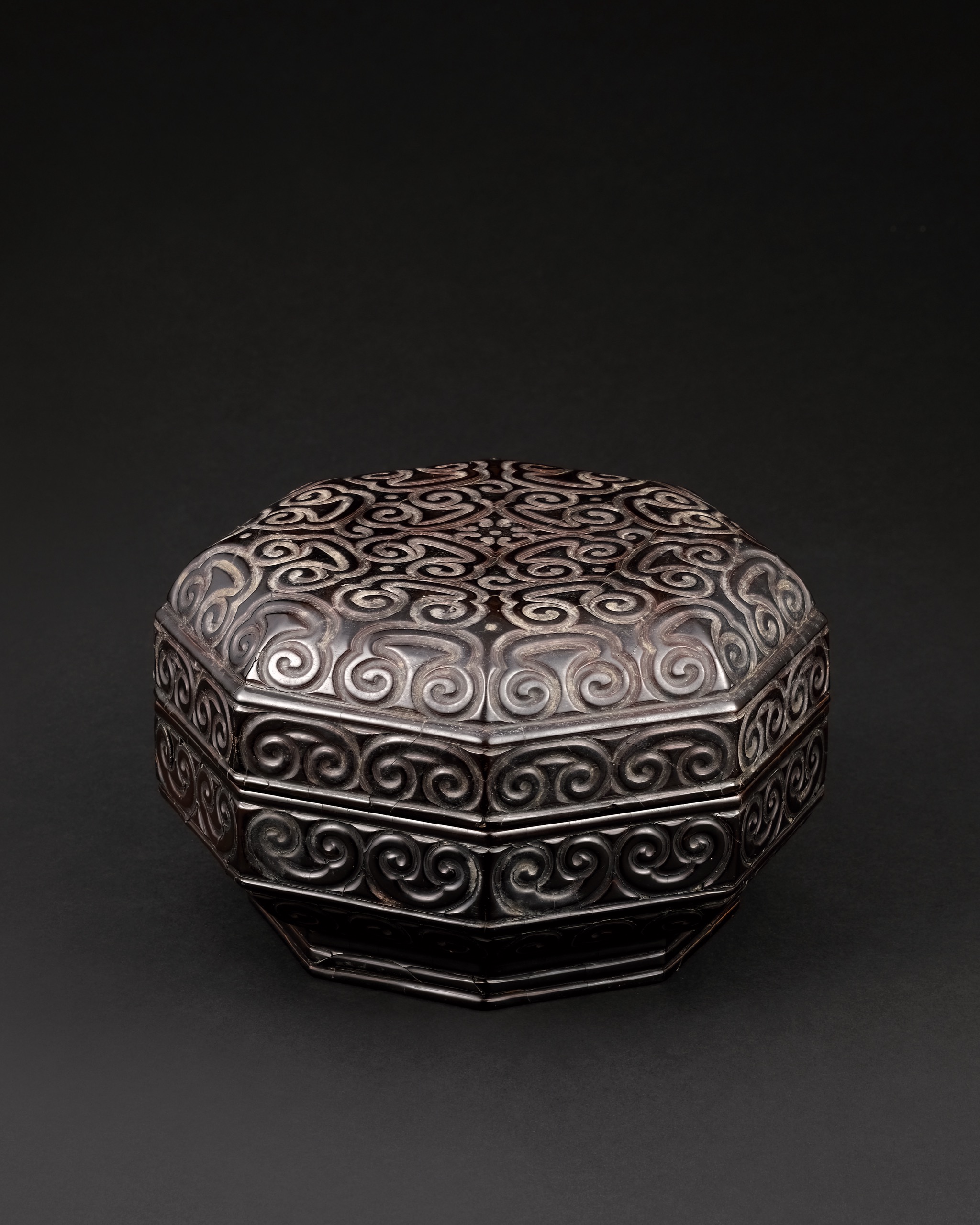 明早期 剔黑犀紋如意八方蓋盒