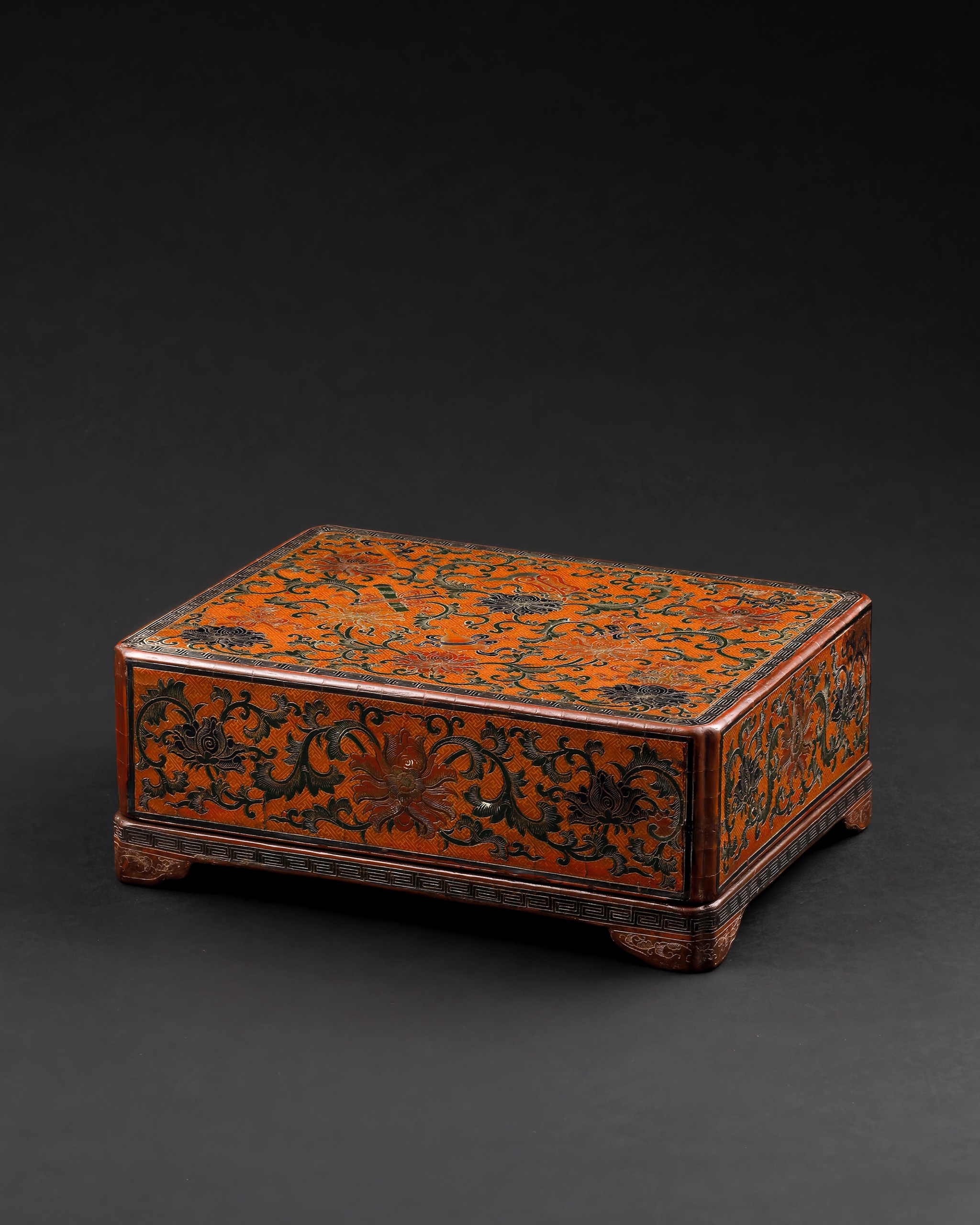 首頁 拍品總覽 2026迎春 share Lot. 1151 清 戧金彩繪纏枝蓮紋方盒 NT$ 30,000-50,000RMB¥ 6,000-10,000HK$ 7,500-12,500 媒材/尺寸 L22.5cm 賞析 戧金彩繪方盒,形制端方,比例穩妥,蓋面與四壁通體髹朱漆為地,色澤沉厚。蓋心及側面以戧金填彩技法飾纏枝蓮紋,花葉翻卷舒展,枝蔓回環連綿,構圖對稱而富節奏。蓮瓣以赭紅、黛藍間施,與金線勾勒相映成趣,層次分明。邊框飾回紋,收束嚴整。盒內髹黑漆,漆面開片自然,見歲月痕跡。 登記競投 返回拍品列表 拍品推薦 1119 清早期 雕漆松下高士圖臂擱 預估價:NT$ 200,000-300,000 2026迎春 1007 清 白玉S形龍紋珮 預估價:NT$ 120,000-180,000 2026迎春 1065 明 銅鎏金鑲白玉穿花龍紋帶板 預估價:NT$ 300,000-500,000 2026迎春 1034 明 玉雕福祿雙喜筆山 預估價:NT$ 120,000-200,000 2026迎春 1147 清 白玉太獅少獅 預估價:NT$ 150,000-250,000 2026迎春 1135 清康熙 五彩牡丹鳳凰紋棒槌瓶 預估價:NT$ 350,000-450,000 2026迎春 1049 清 白玉袖珍龍紋帶鉤 預估價:NT$ 30,000-50,000 2026迎春 1151 清 戧金彩繪纏枝蓮紋方盒 預估價:NT$ 30,000-50,000 2026迎春 1036 清 白玉蛙 預估價:NT$ 200,000-300,000 2026迎春 1146 清 白玉花卉紋盃 預估價:NT$ 120,000-180,000 2026迎春