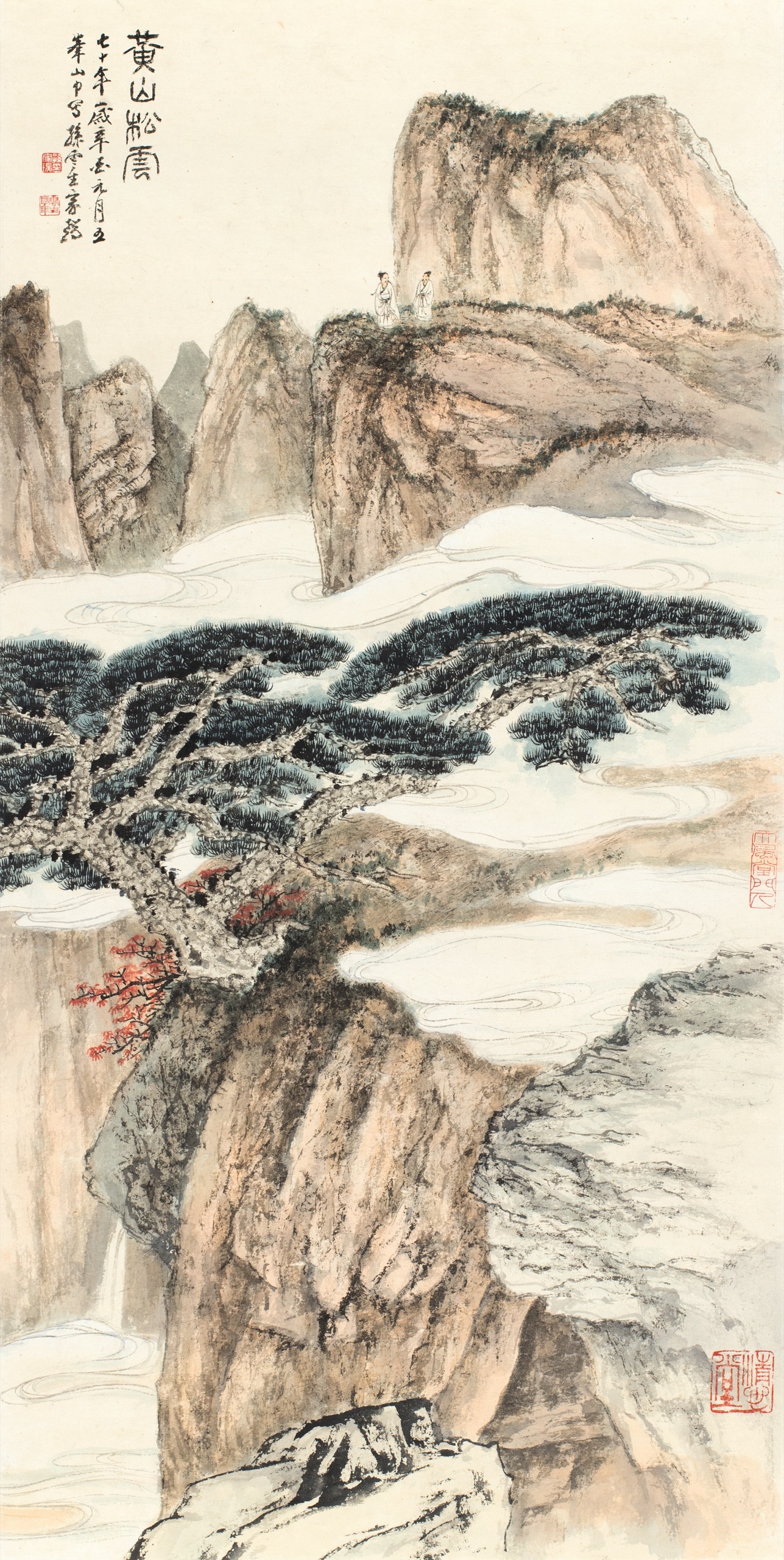 黃山松雲。七十年歲辛酉元月,五峯山中寫,孫雲生家瑞。