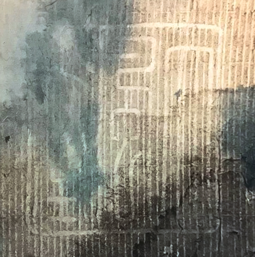 此幀墨色之所以特別酣暢淋漓、層次豐富,正賴此紙發墨之功——濃墨處黝深如漆而不滯,淡墨處清透如玉而不浮,墨韻隨紙紋滲化,自成煙雲縹緲之致。羅紋紙的細密簾紋,如水波蕩漾,與墨色交融,為畫面增添了一層若有若無的肌理之美,非尋常紙素所能企及。