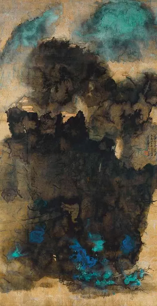 2017年5月,香港佳士得「山嵐靄色 氣韻淋漓—梅雲堂舊藏《雲山古寺》」專場,張大千1965年作《雲山古寺》設色金箋鏡框以1.02億港元天價成交。該作同樣創作於1965年,與本件同年,同為潑墨潑彩成熟期代表作,尺幅172x89.5cm,創下億元佳績。值得注意的是,《雲山古寺》為金箋潑彩,而本件為羅紋紙純墨潑寫,各擅勝場。