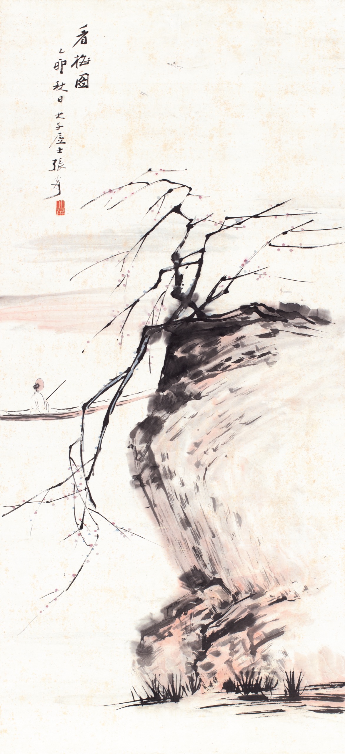 看梅圖,乙卯秋日,大千居士張爰。