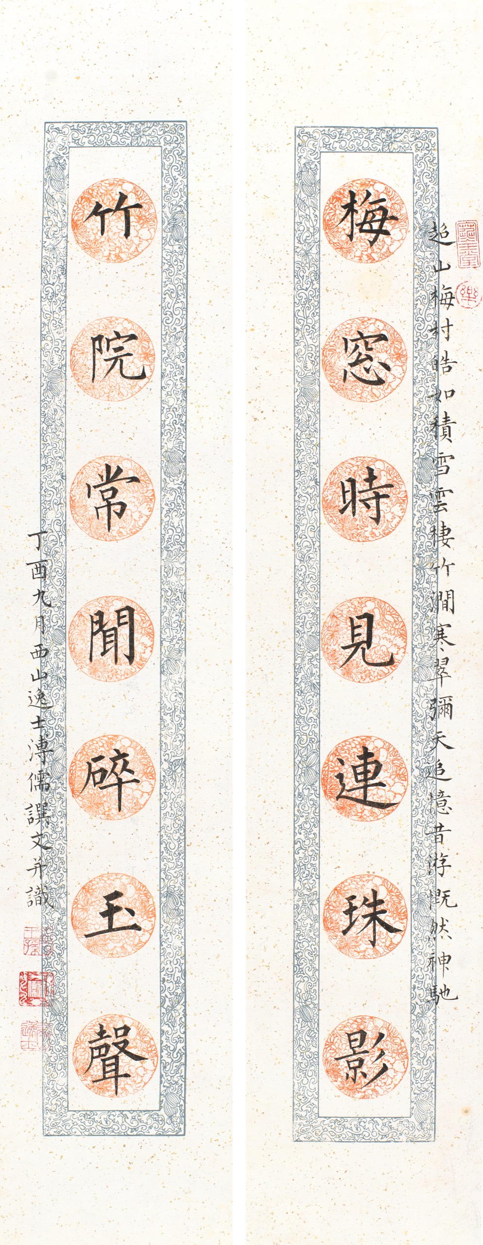 團花楷書七言聯
