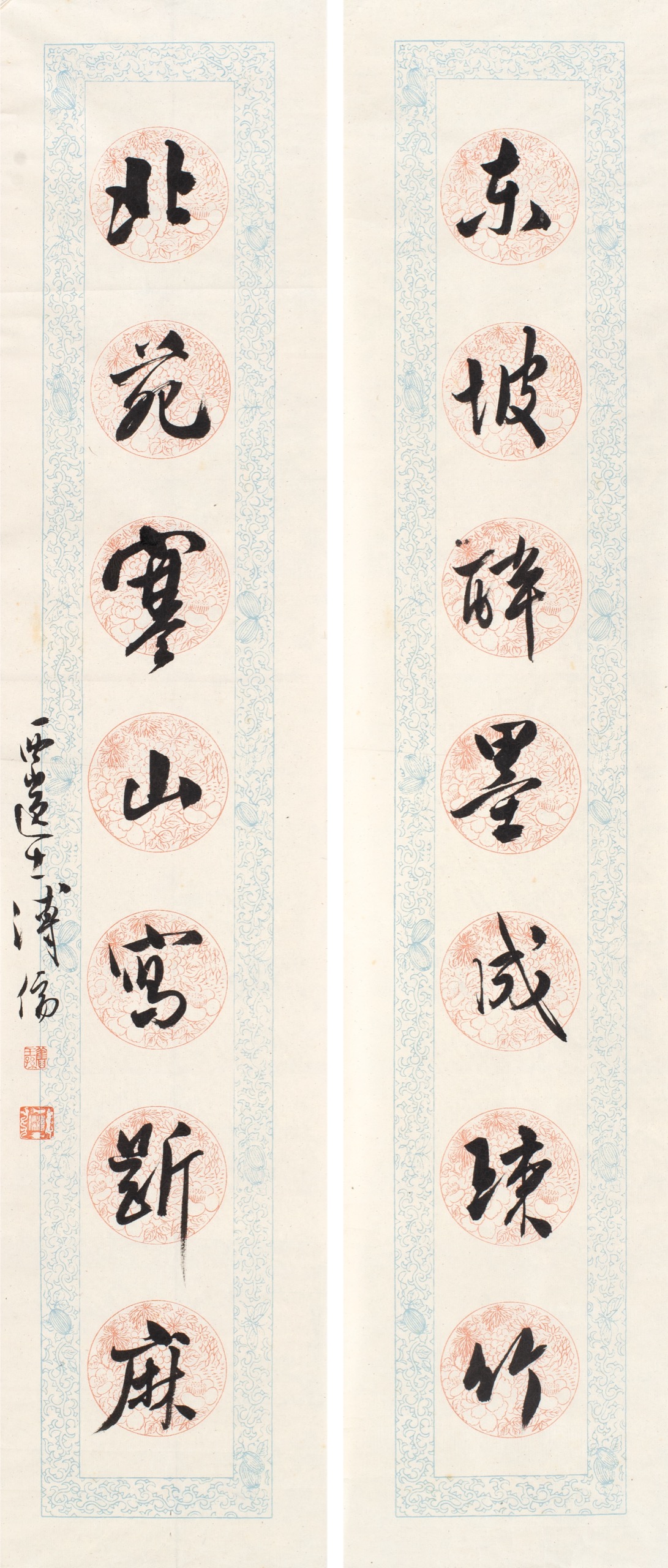 首頁 拍品總覽 2026迎春 share Lot. 3059 溥心畬Pu Hsin-Yu 1896-1963 團花行書七言聯 NT$ 150,000-250,000RMB¥ 30,000-50,000HK$ 37,500-62,500 媒材/尺寸 鏡框 水墨 紙本, 97x20.5cm x2 款識 東坡醉墨成疎竹,北苑寒山寫斷麻。西山逸士溥儒。 鈐印 舊王孫(朱)、溥儒(白)(四靈印)。 登記競投 返回拍品列表 拍品推薦 3166 于右任 草書《孫文學說》第八章有志竟成篇 預估價:NT$ 100,000-150,000 2026迎春 3279 沈耀初 一家歡樂 預估價:NT$ 120,000-150,000 2026迎春 3236 大風堂 臂擱 預估價:NT$ 20,000-30,000 2026迎春 3148 于右任 草書王維詩 預估價:NT$ 150,000-250,000 2026迎春 3155 于右任 草書條幅 預估價:NT$ 150,000-250,000 2026迎春 3378 柯璜 草書七言聯 預估價:NT$ 20,000-30,000 2026迎春 3247 溥心畬 書法條幅 預估價:NT$ 50,000-80,000 2026迎春 3178 張大千 五亭湖上泛舟行 預估價:NT$ 1,500,000-2,500,000 2026迎春 3248 于右任 草書黃花崗詩、親題明信片 (三件一組) 預估價:NT$ 70,000-100,000 2026迎春 3156 于右任 為仁由己 預估價:NT$ 120,000-200,000 2026迎春