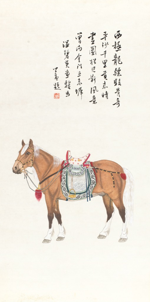 首頁 拍品總覽 2026迎春 share Lot. 3060 溥心畬(題)、溫碧英(畫)Pu Hsin-Yu 1896-1963 龍駒圖 NT$ 50,000-80,000RMB¥ 10,000-16,000HK$ 12,500-20,000 媒材/尺寸 鏡片 設色 紙本, 98x49.5cm 款識 西極龍驃駿骨奇,平沙千里貢來時。畫圖猶見嘶風意,曾向金門立赤墀。溫碧英畫駿馬,心畬題。 鈐印 溥儒(白)。 登記競投 返回拍品列表 拍品推薦 3306 孫雲生等書畫六件 1、張其昀,福利民生-四字條 2、張維翰,蔣公嘉言 3、趙恆惕,隸書紅聯 4、謝稚柳,蘭花 5、馬壽華/吳平,王者之香 6、孫雲生,富貴白頭圖 預估價:NT$ 50,000-80,000 2026迎春 3247 溥心畬 書法條幅 預估價:NT$ 50,000-80,000 2026迎春 3027-1 孫家勤 彩荷競艷-雙屏 預估價:NT$ 250,000-350,000 2026迎春 3148 于右任 草書王維詩 預估價:NT$ 150,000-250,000 2026迎春 3365 朱文震 草堂圖 預估價:NT$ 20,000-30,000 2026迎春 3254 李義弘 燦爛的日子 預估價:NT$ 250,000-350,000 2026迎春 3170 于右任 草書五言聯 預估價:NT$ 120,000-160,000 2026迎春 3111 黃君璧 松巖訪友圖 預估價:NT$ 900,000-1,200,000 2026迎春 3002 孫雲生 荷花圖 預估價:NT$ 5,000-10,000 2026迎春 3275 余承堯 草書 預估價:NT$ 20,000-30,000 2026迎春