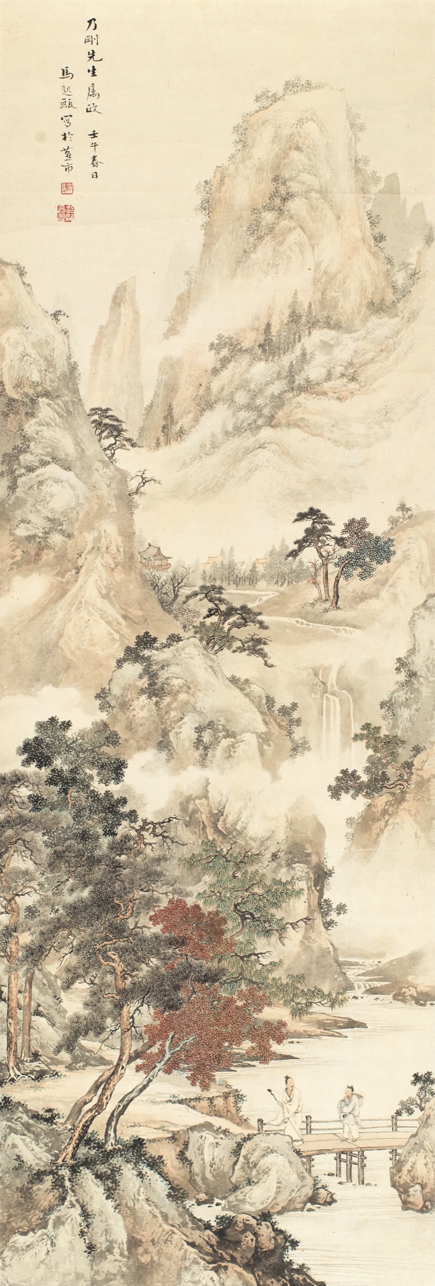 首頁 拍品總覽 2026迎春 share Lot. 3073 馬起甌(畫)、溥心畬(跋)Ma Qi-Ou 谿山覓句 年代:1942 NT$ 30,000-50,000RMB¥ 6,000-10,000HK$ 7,500-12,500 媒材/尺寸 立軸 設色 紙本, 92x31cm 款識 乃剛先生屬政,壬午春日,馬起甌寫於燕市。 鈐印 少逸(朱)、起甌長壽(白)。 來源 上款人:蘇乃剛先生。與Lot.3074、3083同一上款 登記競投 返回拍品列表 拍品推薦 3331 王壯為 書法條幅 預估價:NT$ 20,000-30,000 2026迎春 3004 孫雲生 潑彩山水 預估價:NT$ 5,000-10,000 2026迎春 3078 魯琪光 行書七言聯 預估價:NT$ 80,000-120,000 2026迎春 3011 張大千 印度仕女、番女醉舞圖、香供養天女圖 (三件一組) 預估價:NT$ 50,000-100,000 2026迎春 3162 于右任 草書條幅 預估價:NT$ 80,000-120,000 2026迎春 3229 李奇茂 迎神 預估價:NT$ 80,000-120,000 2026迎春 3278 沈耀初 老梅孤鳥 預估價:NT$ 150,000-250,000 2026迎春 3003 孫雲生 潑彩山水 預估價:NT$ 5,000-10,000 2026迎春 3136 臺靜農 半畝榕湖齋 預估價:NT$ 200,000-300,000 2026迎春 3259 李義弘 虛堂秋色圖 預估價:NT$ 60,000-80,000 2026迎春