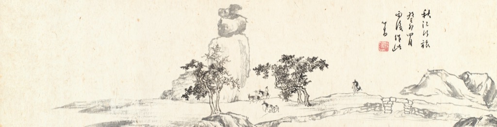 秋江行旅。癸卯四月雨後作此,心畬。