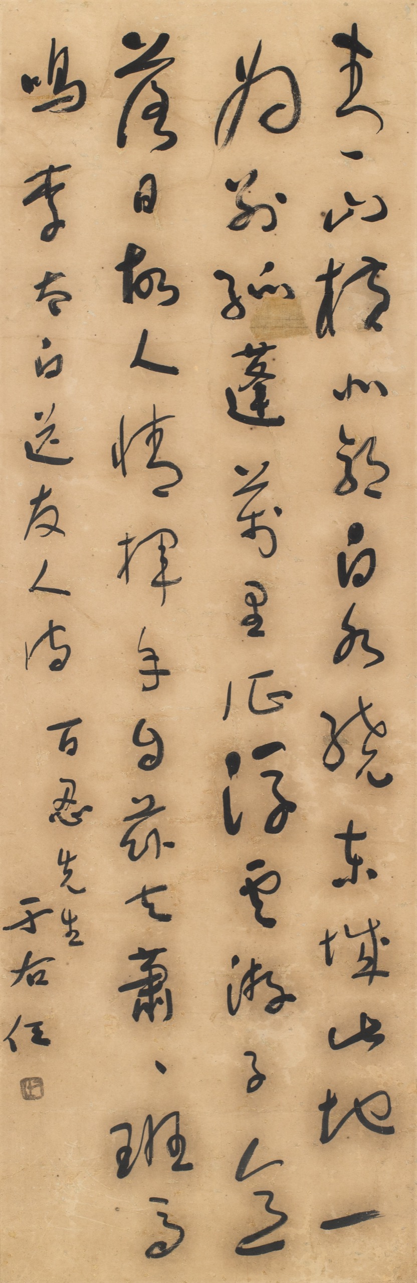 首頁 拍品總覽 2026迎春 share Lot. 3165 于右任Yu You-Ren 1879-1964 草書李白送友人詩 NT$ 80,000-120,000RMB¥ 16,000-24,000HK$ 20,000-30,000 媒材/尺寸 鏡片 水墨 紙本, 101.5x33cm 款識 青山橫北郭,白水繞東城。此地一爲別,孤蓬萬里征。浮雲游子意,落日故人情。揮手自茲去,蕭蕭班馬鳴。李太白送友人詩,百忍先生,于右任。 鈐印 右任(朱)。 來源 上款人:百忍先生。 登記競投 返回拍品列表 拍品推薦 3076 吳子深 行書七言聯 預估價:NT$ 40,000-60,000 2026迎春 3279 沈耀初 一家歡樂 預估價:NT$ 120,000-150,000 2026迎春 3208 鄭曼青 墨竹圖 預估價:NT$ 70,000-100,000 2026迎春 3188 張鯤 書法橫披 預估價:NT$ 80,000-120,000 2026迎春 3060 溥心畬(題)、溫碧英(畫) 龍駒圖 預估價:NT$ 50,000-80,000 2026迎春 3168 于右任 草書條幅(杜詩) 預估價:NT$ 60,000-80,000 2026迎春 3296 黃檗木庵 春到百花開 預估價:NT$ 20,000-30,000 2026迎春 3307 匡仲英、李奇茂 利市三倍、代代封猴圖(二件一組) 預估價:NT$ 50,000-80,000 2026迎春 3364 任熊 萱花鶴壽圖 預估價:NT$ 20,000-30,000 2026迎春 3257 李義弘 四君子 預估價:NT$ 200,000-300,000 2026迎春