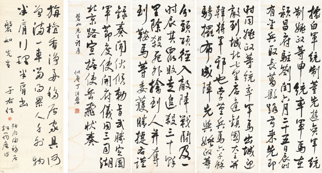 鏡片 水墨 紙本, 112.5x41cm、81x30cm x4