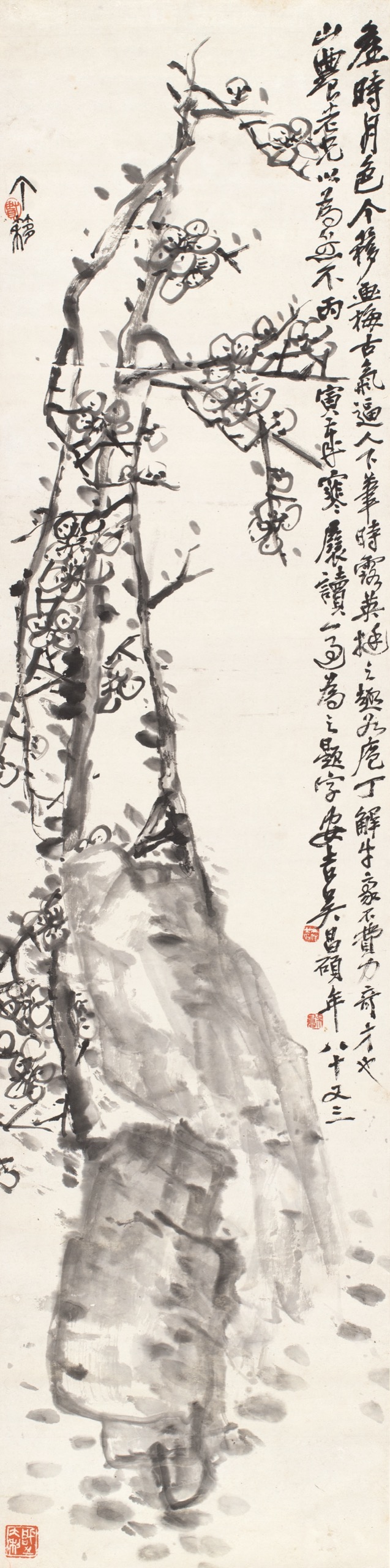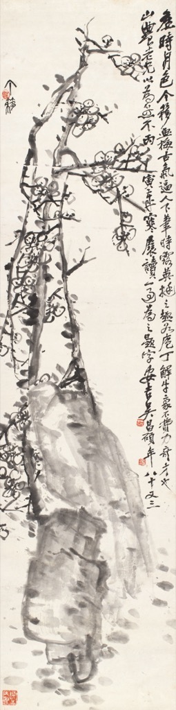 首頁 拍品總覽 2026迎春 share Lot. 3183 吳昌碩(題)、王個簃(畫)Wu Chang-Shuo、Wang Ge-Yi 1844-1927、1897-1988 古梅圖 年代:1926 NT$ 250,000-350,000RMB¥ 50,000-70,000HK$ 62,500-87,500 媒材/尺寸 立軸 水墨 紙本, 135x34cm 款識 吳昌碩:舊時月色,个簃画梅古氣逼人,下筆時露英挺之趣,如庖丁解牛豪不費力,奇才也!山農老兄以為然不?丙寅歲寒展讀一過為之題字,安吉吳昌碩年八十又三。王个簃:个簃。 鈐印 吳昌碩:吳俊之印(白)、吳昌石(朱)。王个簃:賢(朱)、啓之大利(白)。 登記競投 返回拍品列表 拍品推薦 3372 孫雲生 花卉四屏 預估價:NT$ 30,000-50,000 2026迎春 3178 張大千 五亭湖上泛舟行 預估價:NT$ 1,500,000-2,500,000 2026迎春 3258 李義弘 赤壁賦 預估價:NT$ 250,000-350,000 2026迎春 3384 徐寶符等人 書法圓光(三件一組) 預估價:NT$ 20,000-30,000 2026迎春 3380 楊善深 福、溪海群峰(二件一組) 預估價:NT$ 10,000-20,000 2026迎春 3342 溥心畬 行書五言聯 預估價:NT$ 50,000-80,000 2026迎春 3312 高逸鴻等書畫九件 1、高逸鴻,秋菊圖、事事如意畫、歲朝清供圖,三件 2、雷佩芝,郎夫人繪觀音大士像 3、余光中,千禧如意 4、朱玖瑩,書法條幅 5、丁治磐,炳文上款聯 6、余偉,福 7、高拜石,金文大篆書法 預估價:NT$ 50,000-80,000 2026迎春 3257 李義弘 四君子 預估價:NT$ 200,000-300,000 2026迎春 3125 黃君璧 竹石圖 預估價:NT$ 50,000-80,000 2026迎春 3054 溥心畬 輕舟已過萬重山 預估價:NT$ 200,000-300,000 2026迎春