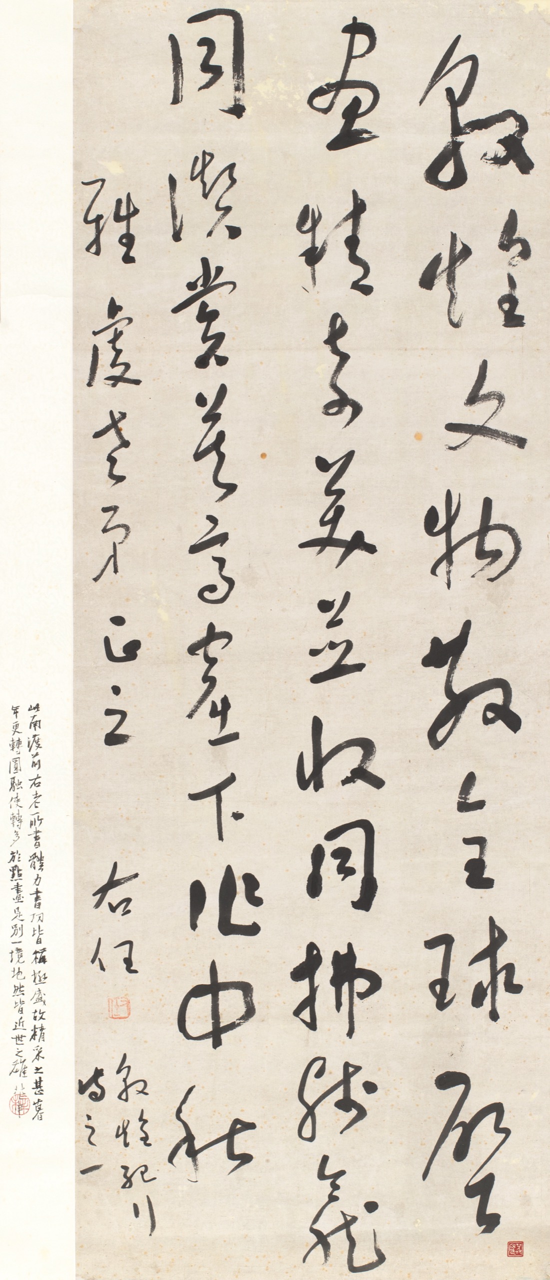 首頁 拍品總覽 2026迎春 share Lot. 3200 于右任、江兆申(題)Yu You-Ren 1879-1964 書敦煌紀行詩 NT$ 250,000-350,000RMB¥ 50,000-70,000HK$ 62,500-87,500 媒材/尺寸 立軸 水墨 紙本, 105x39cm 款識 敦煌文物散全球,壁畫精奇美並收,同拂殘龕同讚賞,莫高窟下作中秋。雅虔老弟正之,右任。敦煌紀行詩之一。此南渡前右老所書,體力書功皆稱極盛,故精采之甚,暮年更轉圓融使轉多於點畫,是別一境地然,皆近世之雄,兆申。 鈐印 右任(朱)、辛未(朱)、茮原(白)。 來源 江兆申題簽:于髯聖墨寶。右老精筆,辛未入藏靈漚館。 登記競投 返回拍品列表 拍品推薦 3378 柯璜 草書七言聯 預估價:NT$ 20,000-30,000 2026迎春 3045 張大千 倣趙松雪齋高士舟居圖 預估價:NT$ 600,000-1,200,000 2026迎春 3242 傅申 紫氣東來 預估價:NT$ 30,000-50,000 2026迎春 3107 溥心畬 簽名照 (張大千、溥心畬、董作賓、張默君) 、 溥心畬、張默君 (書法) 預估價:NT$ 80,000-120,000 2026迎春 3085 于右任 草書五言巨聯 預估價:NT$ 6,000,000-10,000,000 2026迎春 3336 趙雲壑 一字一畫 扇面 預估價:NT$ 10,000-20,000 2026迎春 3050 任伯年(畫)、吳雲(書) 秋花棲禽 預估價:NT$ 200,000-300,000 2026迎春 3032 沙馥 四美圖 預估價:NT$ 120,000-200,000 2026迎春 3321 汪中 心經橫批 預估價:NT$ 30,000-50,000 2026迎春 3104 溥心畬 楷書記藻 預估價:NT$ 1,200,000-2,000,000 2026迎春