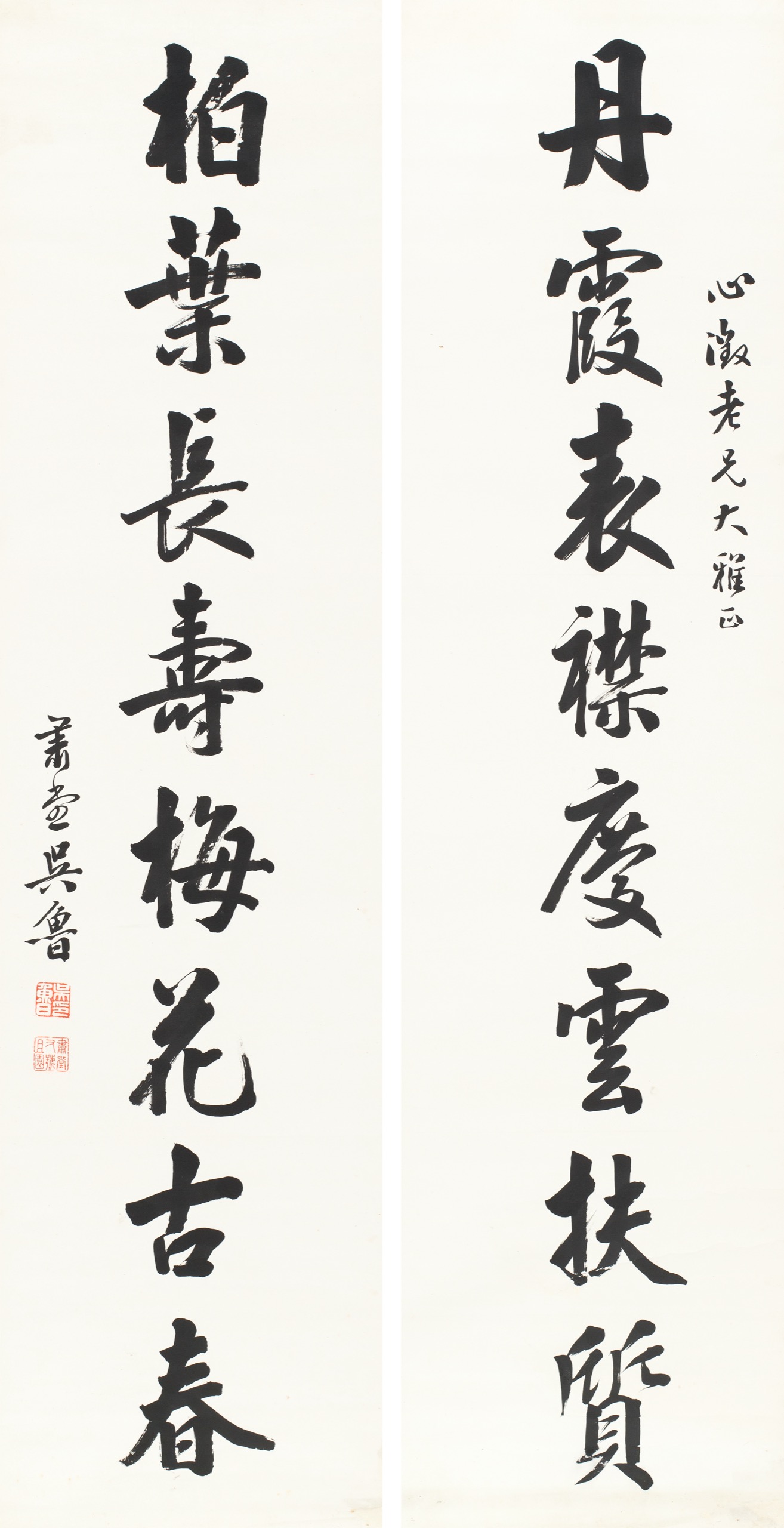 丹霞表襟慶雲扶質,柏葉長壽梅花古春。心澂老兄大雅正,肅堂吳魯。