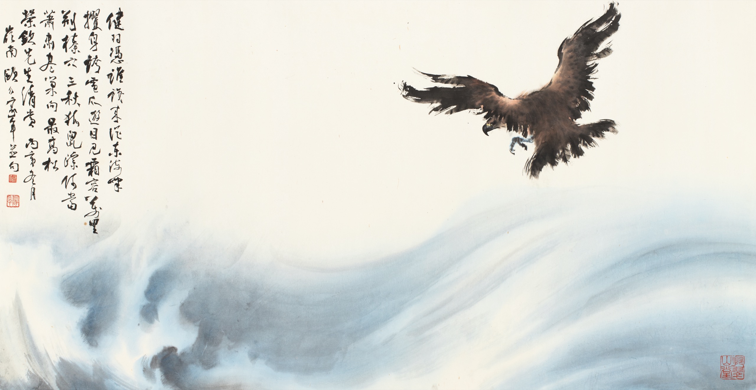 首頁 拍品總覽 2026迎春 share Lot. 3264 歐豪年Ou Hao-Nien 1935-2024 振翅高飛 年代:1986 NT$ 180,000-250,000RMB¥ 36,000-50,000HK$ 45,000-62,500 媒材/尺寸 鏡片 設色 紙本, 73x141cm 款識 健羽憑誰識,來從東海峰,攫身誇電爪,遊目見霜容,萬里荊榛穴,三秋狐鼠踪,何當蕭肅盡,巢向最高松。榮欽先生清賞,丙寅冬月,嶺南歐介豪年並句。 鈐印 歐介(白)、豪年(朱)、挹翠山堂(朱)。 登記競投 返回拍品列表 拍品推薦 3178 張大千 五亭湖上泛舟行 預估價:NT$ 1,500,000-2,500,000 2026迎春 3349 劉旦宅(題)、肖雲(畫) 貂裘出塞圖 預估價:NT$ 20,000-30,000 2026迎春 3166 于右任 草書《孫文學說》第八章有志竟成篇 預估價:NT$ 100,000-150,000 2026迎春 3288 高陽 波羅密心經 預估價:NT$ 100,000-150,000 2026迎春 3322 汪中 書法四屏 預估價:NT$ 60,000-80,000 2026迎春 3191 黃均 秋江晴嶂 預估價:NT$ 80,000-120,000 2026迎春 3354 徐操、溥佐 觀音、雙駿(二件一組) 預估價:NT$ 30,000-50,000 2026迎春 3291 了堂惟一 達摩 預估價:NT$ 30,000-50,000 2026迎春 3076 吳子深 行書七言聯 預估價:NT$ 40,000-60,000 2026迎春 3083 郎靜山 行書七言聯 預估價:NT$ 20,000-30,000 2026迎春