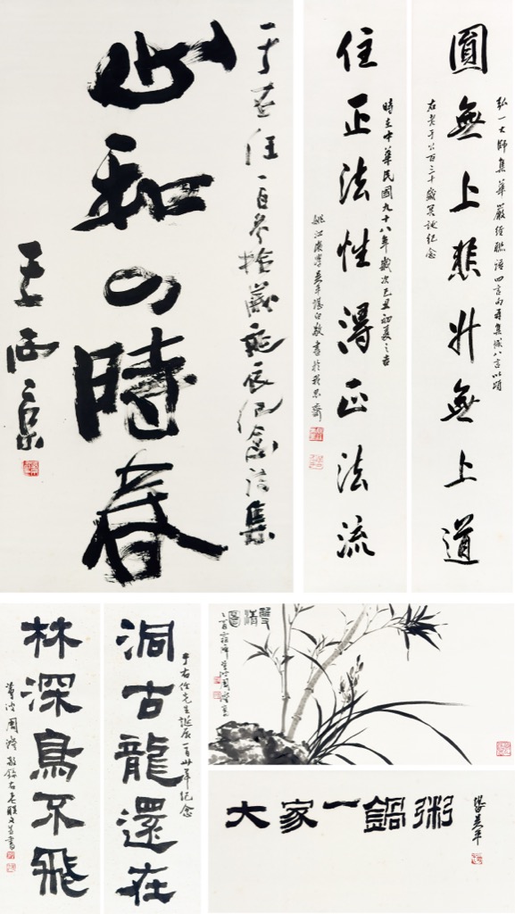 首頁 拍品總覽 2026迎春 share Lot. 3308 王西京等書畫五件Wang Xi-Jing b.1946 1、王西京,心如四時春 2、周澄,雙清圖3、周澄,于右老百三十誕辰紀念聯4、吳平,大家一鍋粥5、吳平,于右老百三十歲紀念聯 NT$ 30,000-50,000RMB¥ 6,000-10,000HK$ 7,500-12,500 媒材/尺寸 立軸 水墨 紙本, (1)138x68.5cm (2)34.5x64.5cm (3)67x21.5cm x2 (4)27x57cm (5)93x16.5cm x2 登記競投 返回拍品列表 拍品推薦 3275 余承堯 草書 預估價:NT$ 20,000-30,000 2026迎春 3371 江明賢 寒梅飄香 預估價:NT$ 20,000-30,000 2026迎春 3098 溥心畬 千山夕陽亭 預估價:NT$ 800,000-1,500,000 2026迎春 3059 溥心畬 團花行書七言聯 預估價:NT$ 150,000-250,000 2026迎春 3024 張大千 繪贈雲生潑墨雲山圖 預估價:NT$ 5,000,000-8,000,000 2026迎春 3386 黃幻吾 楓林翠鳥 預估價:NT$ 20,000-30,000 2026迎春 3277 沈耀初 雙鵝戲水 預估價:NT$ 120,000-180,000 2026迎春 3311 歐豪年等書畫九件 1、歐豪年,黃魂、飛鷹圖,二件 2、葉公超,幽蘭 3 、葉公超,朱竹 4、季康,桐蔭放鶴圖(梁在平藏) 5、許世英,書法 6、鍾壽仁,竹石圖、對聯、硃砂心經,三件 預估價:NT$ 80,000-120,000 2026迎春 3324 崇綺(同治滿族狀元) 書法條幅 預估價:NT$ 40,000-60,000 2026迎春 3367 李霞 麻姑獻壽 預估價:NT$ 20,000-30,000 2026迎春