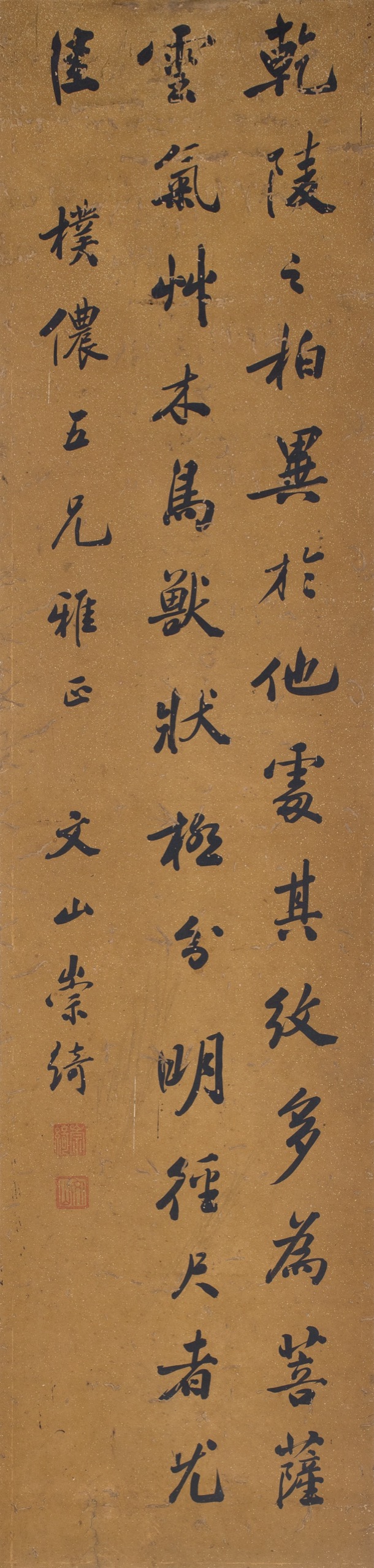 首頁 拍品總覽 2026迎春 share Lot. 3324 崇綺(同治滿族狀元)Chung Chi 1829-1900 書法條幅 NT$ 40,000-60,000RMB¥ 8,000-12,000HK$ 10,000-15,000 媒材/尺寸 立軸 水墨 紙本, 120x29cm 款識 乾陵之柏異於他處其紋多為菩薩雲氣草木鳥獸狀極分明徑尺者尤佳。樸儂五兄雅正,文山崇綺。 鈐印 崇綺(白)、文山(朱)。 登記競投 返回拍品列表 拍品推薦 3243 傅申 日進斗金 預估價:NT$ 5,000-10,000 2026迎春 3096 溥心畬 五柳先生 預估價:NT$ 600,000-1,200,000 2026迎春 3070 蕭俊賢(畫)、溥心畬(題) 溪山靜逸 預估價:NT$ 50,000-80,000 2026迎春 3214 吳平 我思齋吳平印拓18本(散裝一批) (19件一組) 預估價:NT$ 60,000-100,000 2026迎春 3234 大風堂供石(張大千親題) 壽安石門 奇石供石擺件 預估價:NT$ 80,000-120,000 2026迎春 3262 歐豪年 雙雛圖 預估價:NT$ 50,000-80,000 2026迎春 3209 馬紹文 竹石圖 預估價:NT$ 10,000-20,000 2026迎春 3020 張大千 清黃應禎題東坡懿跡圖、簽條 張大千題東坡懿跡圖 預估價:NT$ 600,000-1,200,000 2026迎春 3066 于右任 草書五言聯 預估價:NT$ 150,000-250,000 2026迎春 3108 溥儒、嚴家淦、李石曾、魏道明、張研田、徐柏園、李儻、秦慧伽、蔡屏藩 溥儒、嚴家淦等 徐海帆上款信札數枚 預估價:NT$ 120,000-160,000 2026迎春