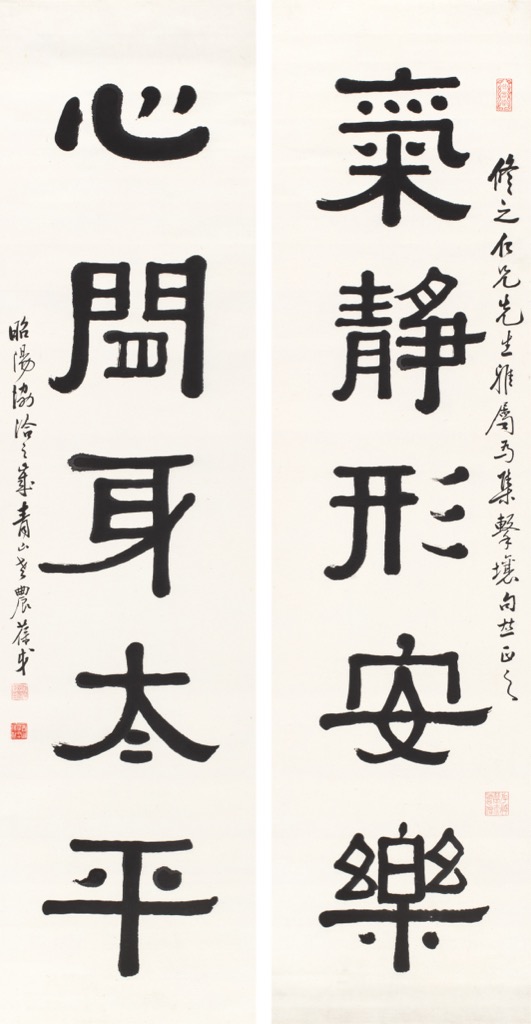 首頁 拍品總覽 2026迎春 share Lot. 3325 黃葆戉 Huang Bao-Syu 1880-1968 隸書五言聯 NT$ 50,000-80,000RMB¥ 10,000-16,000HK$ 12,500-20,000 媒材/尺寸 立軸 水墨 紙本, 146.5x37.5cm x2 款識 氣靜形安樂,心閒身太平。修之仁兄先生雅屬,為集擊壤句竝正之,昭陽協洽之歲,青山老農葆戉。 鈐印 永春堂(朱)、斿惰辳夫酒肉僧(朱)、長樂黃保戉印(朱)、青山辳六十後作(白)。 來源 來源:《中國書畫(二)》,天津文物公司,2003年8月27日,Lot.122。 登記競投 返回拍品列表 拍品推薦 3325 黃葆戉 隸書五言聯 預估價:NT$ 50,000-80,000 2026迎春 3320 臺靜農(畫)、董橋(題) 墨梅圖 預估價:NT$ 100,000-150,000 2026迎春 3285 鄭善禧 竹石清堅圖 預估價:NT$ 40,000-60,000 2026迎春 3069 陳半丁(畫)、溥心畬(跋) 《惜牡丹》詩意 預估價:NT$ 80,000-150,000 2026迎春 3061 溥心畬(題)、溫碧英(畫) 控御圖 預估價:NT$ 50,000-80,000 2026迎春 3204 拓本、江兆申(題) 舊榻漢魯峻碑 預估價:NT$ 80,000-120,000 2026迎春 3171 于右任、陳月波 書法條幅(四件一組) 預估價:NT$ 20,000-30,000 2026迎春 3277 沈耀初 雙鵝戲水 預估價:NT$ 120,000-180,000 2026迎春 3301 吳敬恆先生遺札等一批 1、 吳稚暉致憲睦叔公信札63頁紙、吳稚暉手繪地圖並圖示說明、吳稚暉致振岩先生信札 2、 蔣中正,為吳稚暉八十壽紀念稿 3、 蔡元培,信札 4、 楊森,信札 5、 徐悲鴻,信札 6、 李石曾,信札 預估價:NT$ 200,000-300,000 2026迎春 3328 石盦 書海客談瀛洲 預估價:NT$ 40,000-60,000 2026迎春