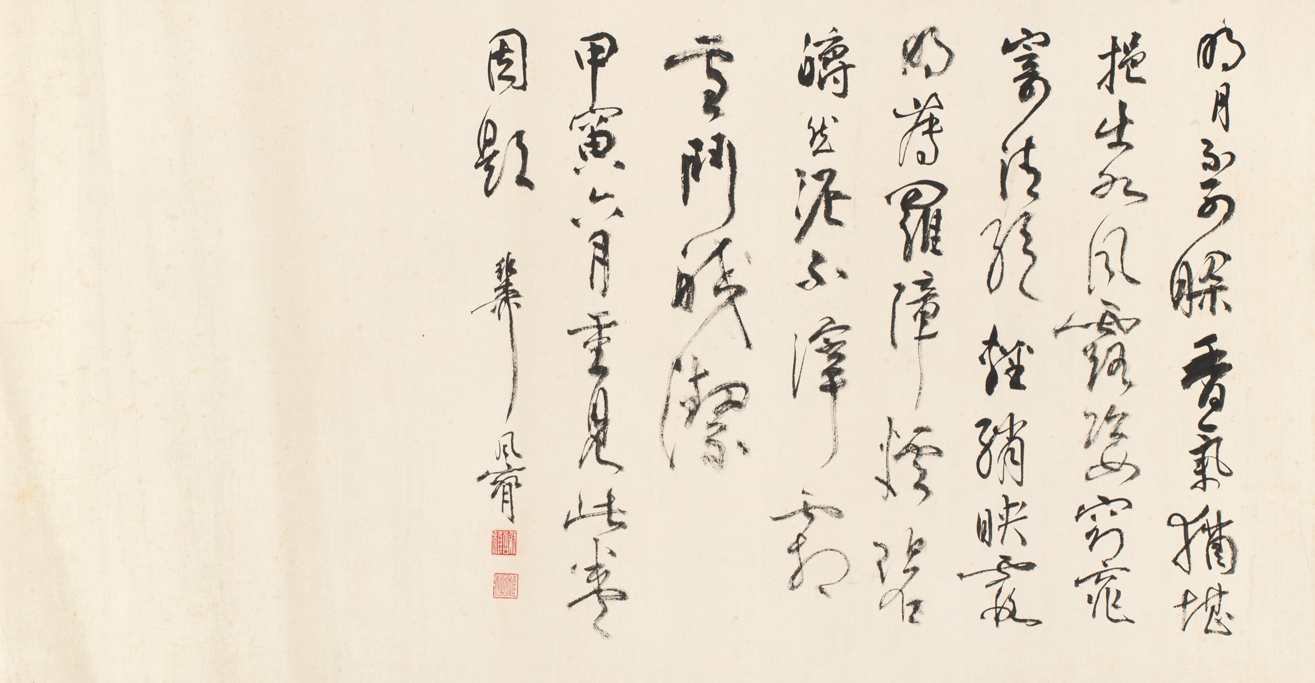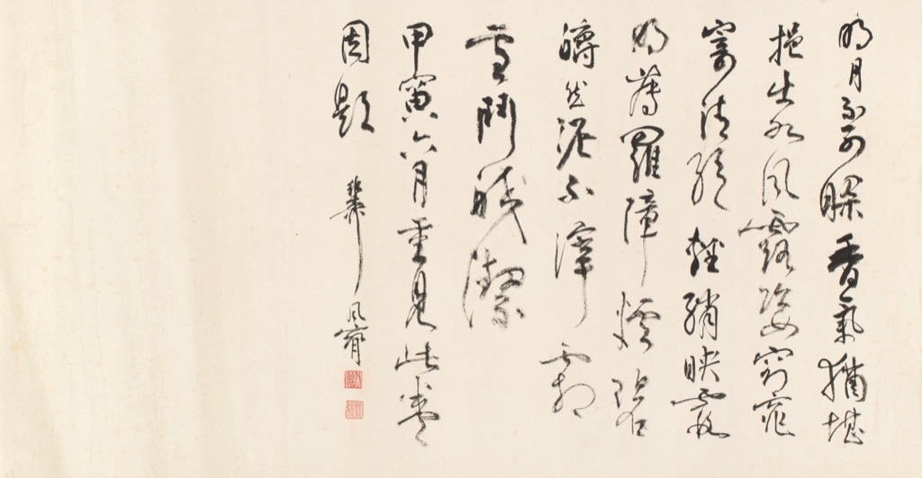 首頁 拍品總覽 2026迎春 share Lot. 3327 謝稚柳Shie Jr-Liou 1910-1997 書法橫幅 年代:1974 NT$ 40,000-60,000RMB¥ 8,000-12,000HK$ 10,000-15,000 媒材/尺寸 鏡片 水墨 紙本, 36x68.5cm 款識 明月不可□香氣猶堪挹出如風露姿窈窕寄清絕離綃映霞明薄羅障煙碧□然泥不滓霜雪門皎潔。甲寅六月重見此卷因題。稚柳風腕。 鈐印 謝稚(白) 、稚柳(朱) 。 登記競投 返回拍品列表 拍品推薦 3305 鈕永建等書畫十件 1、鈕永建,壽字、書法,二件 2、陳立夫,對聯、條幅,二件 3、溥心畬,黃金果 4、劉太希,書法、佛畫,二件 5、孔德成,書法條幅(陳瑞庚代筆) 6、李石曾,書法條幅、風雨同舟,二件 預估價:NT$ 80,000-120,000 2026迎春 3118 溥心畬 百壽遐齡 預估價:NT$ 150,000-250,000 2026迎春 3337 齊白石 群蝦圖 預估價:NT$ 200,000-300,000 2026迎春 3208 鄭曼青 墨竹圖 預估價:NT$ 70,000-100,000 2026迎春 3194 何紹基 詞林行書七言聯 預估價:NT$ 120,000-200,000 2026迎春 3364 任熊 萱花鶴壽圖 預估價:NT$ 20,000-30,000 2026迎春 3346 陳緣督 秋山閒眺圖 預估價:NT$ 20,000-30,000 2026迎春 3170 于右任 草書五言聯 預估價:NT$ 120,000-160,000 2026迎春 3019 張大千 擬韓幹師子花 預估價:NT$ 50,000-100,000 2026迎春 3310 吳稚暉相關攝影等六件 1、 吳稚暉攝影:猴家團圓、吳稚暉布鞋、吳稚暉手杖、吳稚暉故居、與蔣中正合影,五件 2、狄膺,吳稚暉海葬狄先生送靈登機照片 預估價:NT$ 50,000-80,000 2026迎春