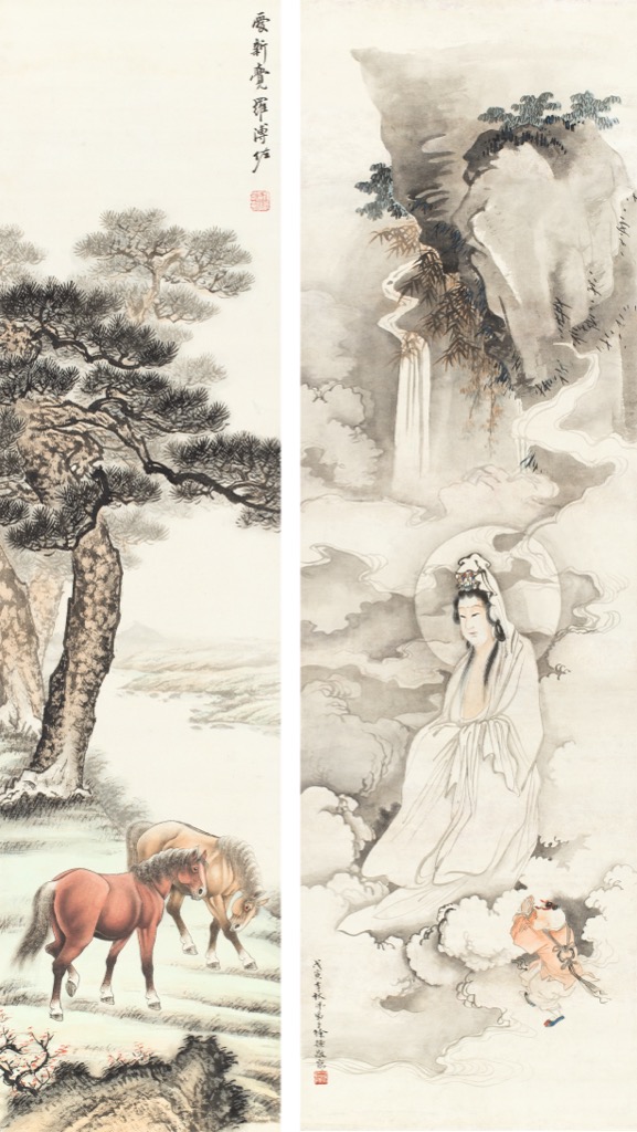 首頁 拍品總覽 2026迎春 share Lot. 3354 徐操、溥佐Shiu Tsau、Pu Zuo 1899-1961、1918-2001 觀音、雙駿(二件一組) NT$ 30,000-50,000RMB¥ 6,000-10,000HK$ 7,500-12,500 媒材/尺寸 立軸 設色 紙本, 113.5x33.7cm、131x33cm 賞析 徐操,字燕孫,號霜紅樓主,河北深縣人,生於北京。近代著名人物畫家。溥佐,愛新覺羅氏,號庸齋,滿族。清道光帝旻寧曾孫,自幼酷愛書畫,兄溥雪齋、溥松窗等皆為名家。 登記競投 返回拍品列表 拍品推薦 3267 余承堯 亂山重翠.紅瓦人家 預估價:NT$ 240,000-300,000 2026迎春 3316 臺靜農 隸書五言聯 預估價:NT$ 120,000-160,000 2026迎春 3027 張大千 擬董北苑江隄晚景 預估價:NT$ 3,000,000-5,000,000 2026迎春 3184 陳半丁 仿石濤山水 預估價:NT$ 80,000-120,000 2026迎春 3147 于右任 草書《春日喜逢鄉人劉松》 預估價:NT$ 150,000-250,000 2026迎春 3301 吳敬恆先生遺札等一批 1、 吳稚暉致憲睦叔公信札63頁紙、吳稚暉手繪地圖並圖示說明、吳稚暉致振岩先生信札 2、 蔣中正,為吳稚暉八十壽紀念稿 3、 蔡元培,信札 4、 楊森,信札 5、 徐悲鴻,信札 6、 李石曾,信札 預估價:NT$ 200,000-300,000 2026迎春 3034 吳昌碩 達摩渡江 預估價:NT$ 2,000,000-3,000,000 2026迎春 3024 張大千 繪贈雲生潑墨雲山圖 預估價:NT$ 5,000,000-8,000,000 2026迎春 3032 沙馥 四美圖 預估價:NT$ 120,000-200,000 2026迎春 3197 臺靜農 書晁冲之詩條幅 預估價:NT$ 150,000-250,000 2026迎春