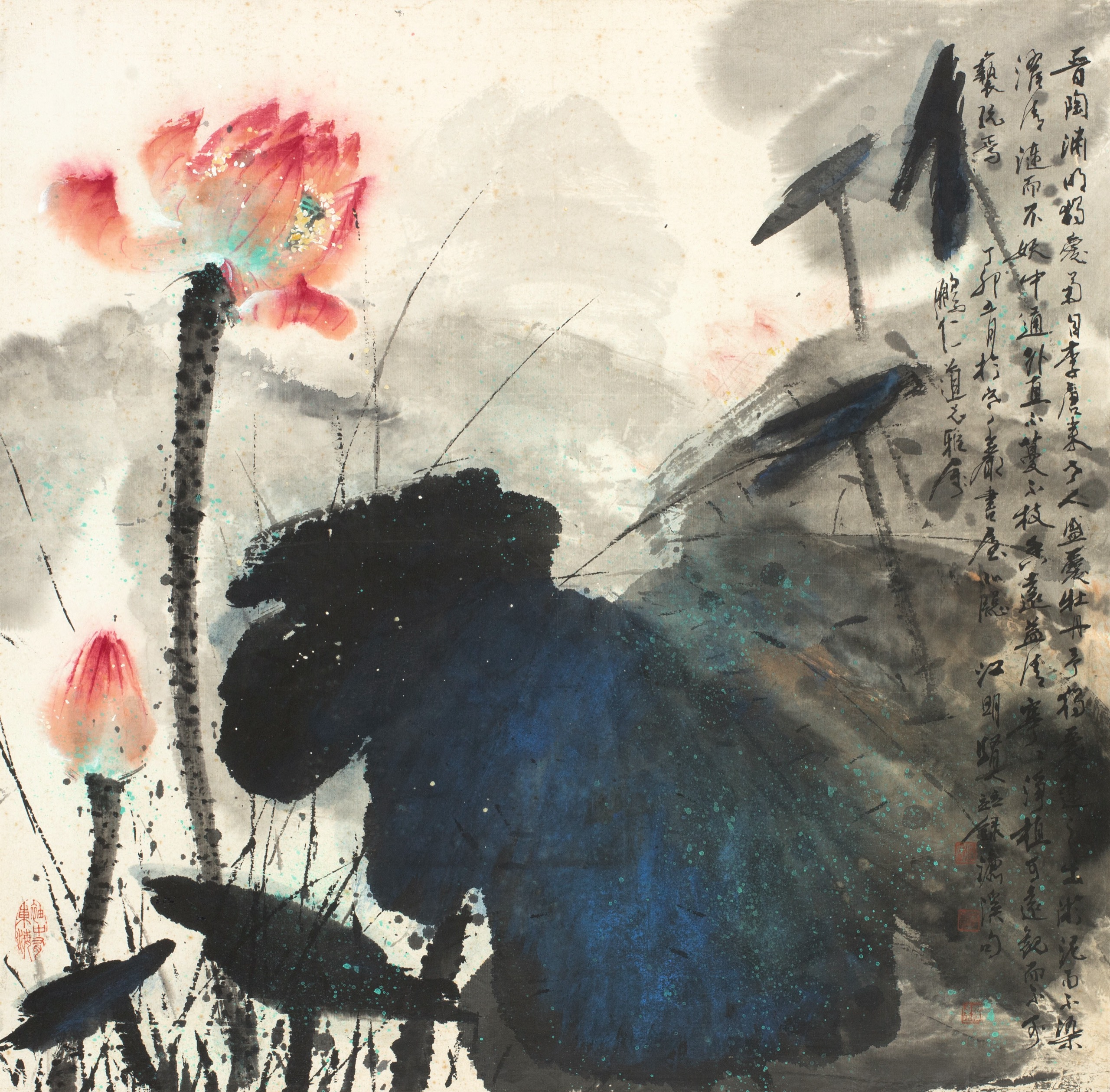 晉陶淵明獨愛菊。自李唐來,世人盛愛牡丹。予獨愛蓮之出淤泥而不染,濯清漣而不妖,中通外直,不蔓不枝,香遠益清,亭亭淨植,可遠觀而不可褻玩焉。丁卯五月於寒巖書屋□牕,鵬仁道兄雅屬,江明賢竝錄濂溪句。